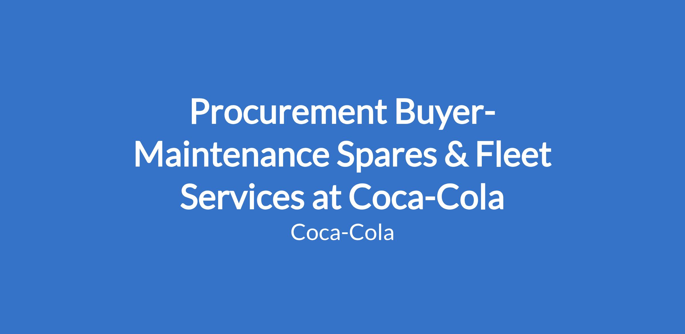 Procurement Buyer- Maintenance Spares & Fleet Services at Coca-Cola
