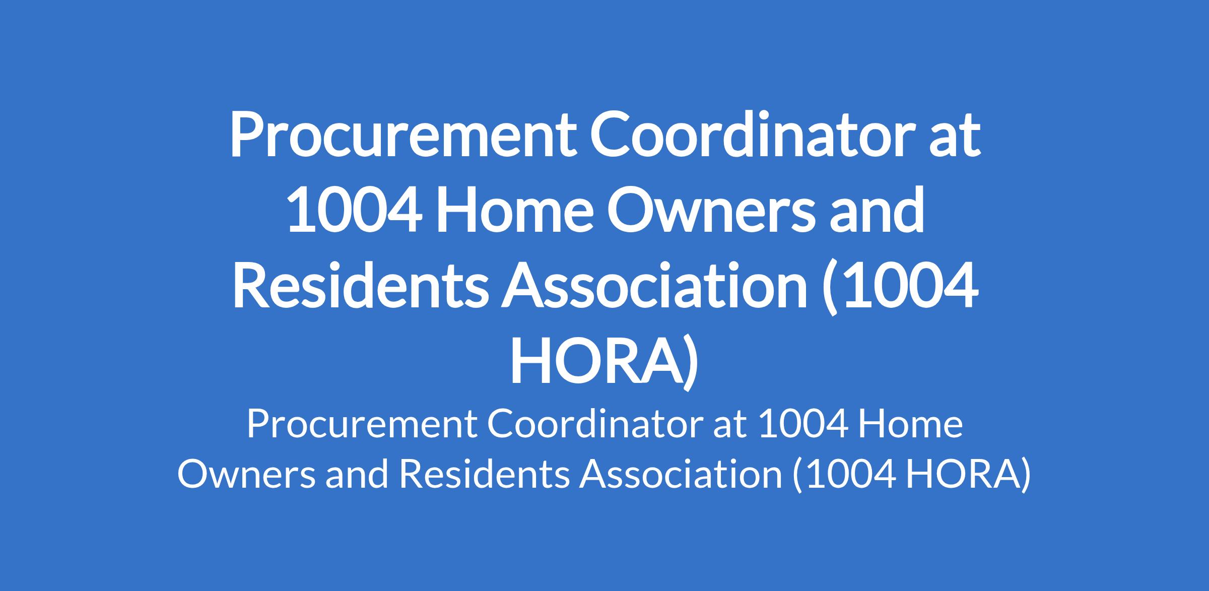 The 1004 Home Owners and Residents Association (1004 HORA) - 1004 Estate Management Office is recruiting to fill the position of: Procurement Coordinator. The position is located in Victoria Island, Lagos State. Interested candidates should possess a Bachelor's Degree in Business Administration, Supply Chain, Economics, Engineering or related field with 5 years experience in procurement Strong negotiation and vendor management skills.