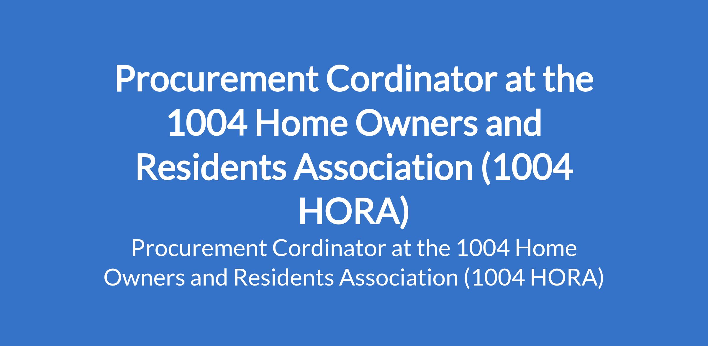 The 1004 Home Owners and Residents Association (1004 HORA) - 1004 Estate Management Office is recruiting to fill the position of: Procurement Cordinator. The position is located in Victoria Island, Lagos State. Interested candidates should possess a Bachelors Degree in Business Administration, Supply Chain, Economics, Engineering or related fields with 5 years experience in procurement.