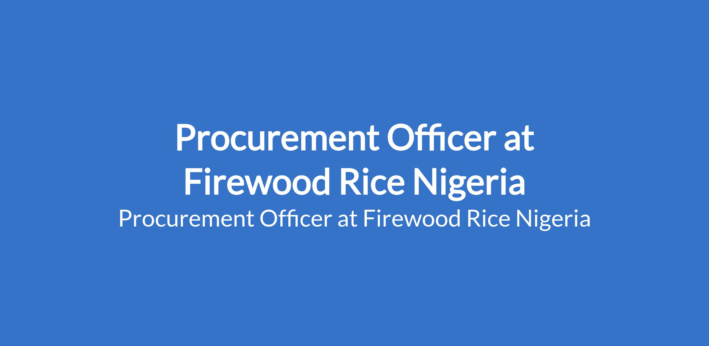 Firewood Rice Nigeria is recruiting to fill the position of: Procurement Officer. The position is located in Lagos State. Salary: N150,000 - N200,000 per month. Interested candidates should possess a Bachelors Degree or HND qualification in Supply Chain Management, Business Administration, or related fields with a minimum of 3 years procurement experience (food production or hospitality industry preferred).