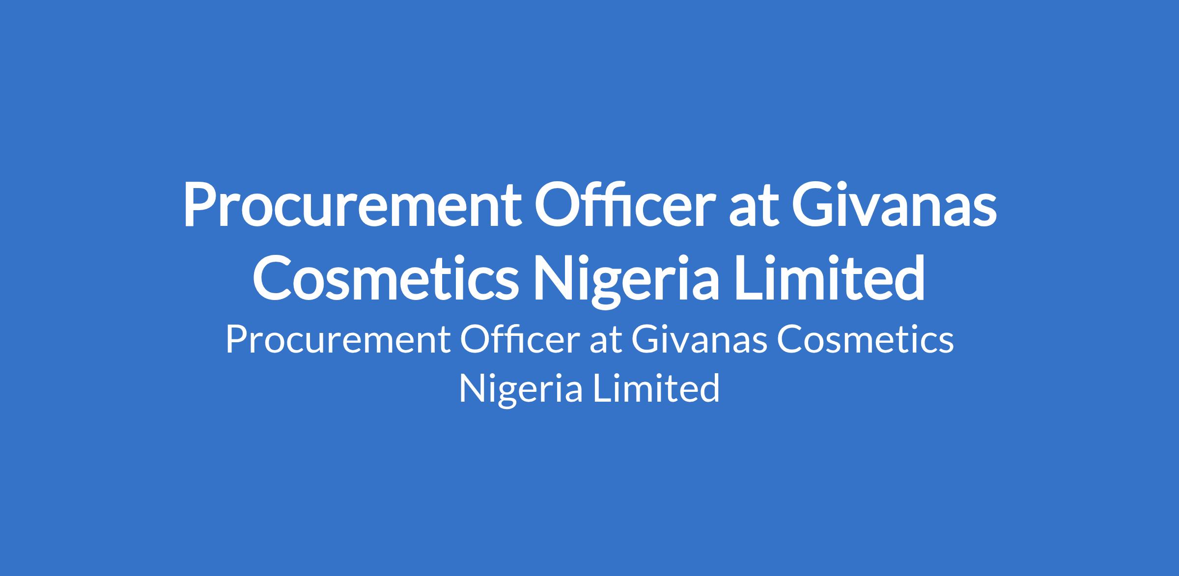 Givanas Cosmetics Nigeria Limited is recruiting to fill the position of: Procurement Officer. The position is located in Apapa, Lagos State. Interested candidates should possess a B.Sc. in Accounting, Business Administration, Finance or related field and previous procurement/contract management experience in a structured organisation.