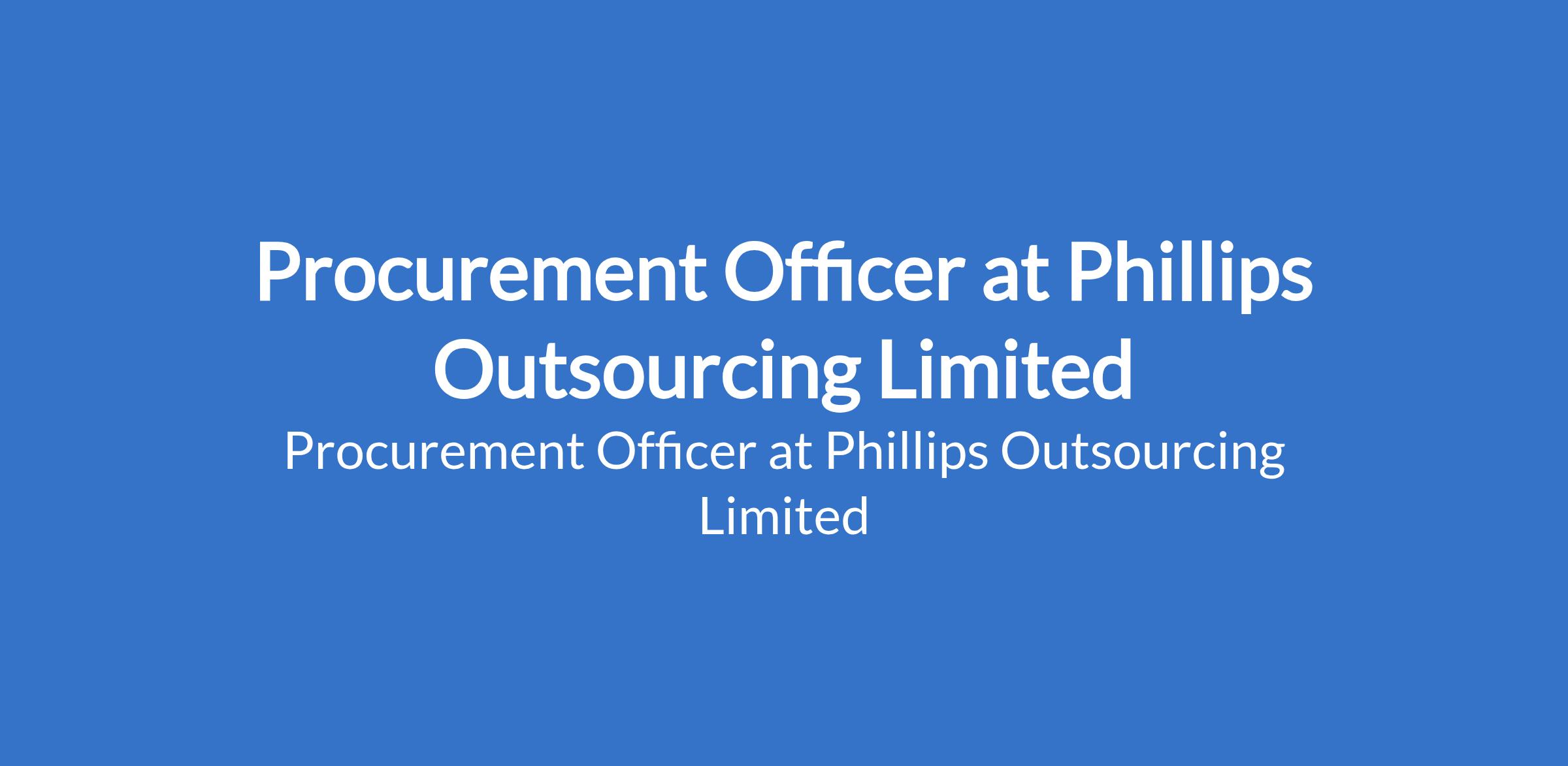 Phillips Outsourcing Limited is recruiting to fill the position of: Procurement Officer. The position is located in Ikoyi, Lagos State. Salary: N500,000 monthly. Interested candidates should possess a Bachelors Degree in Procurement, Supply Chain Management, Business Administration, or a related field with 5 years of experience in procurement, supply chain, or vendor management.