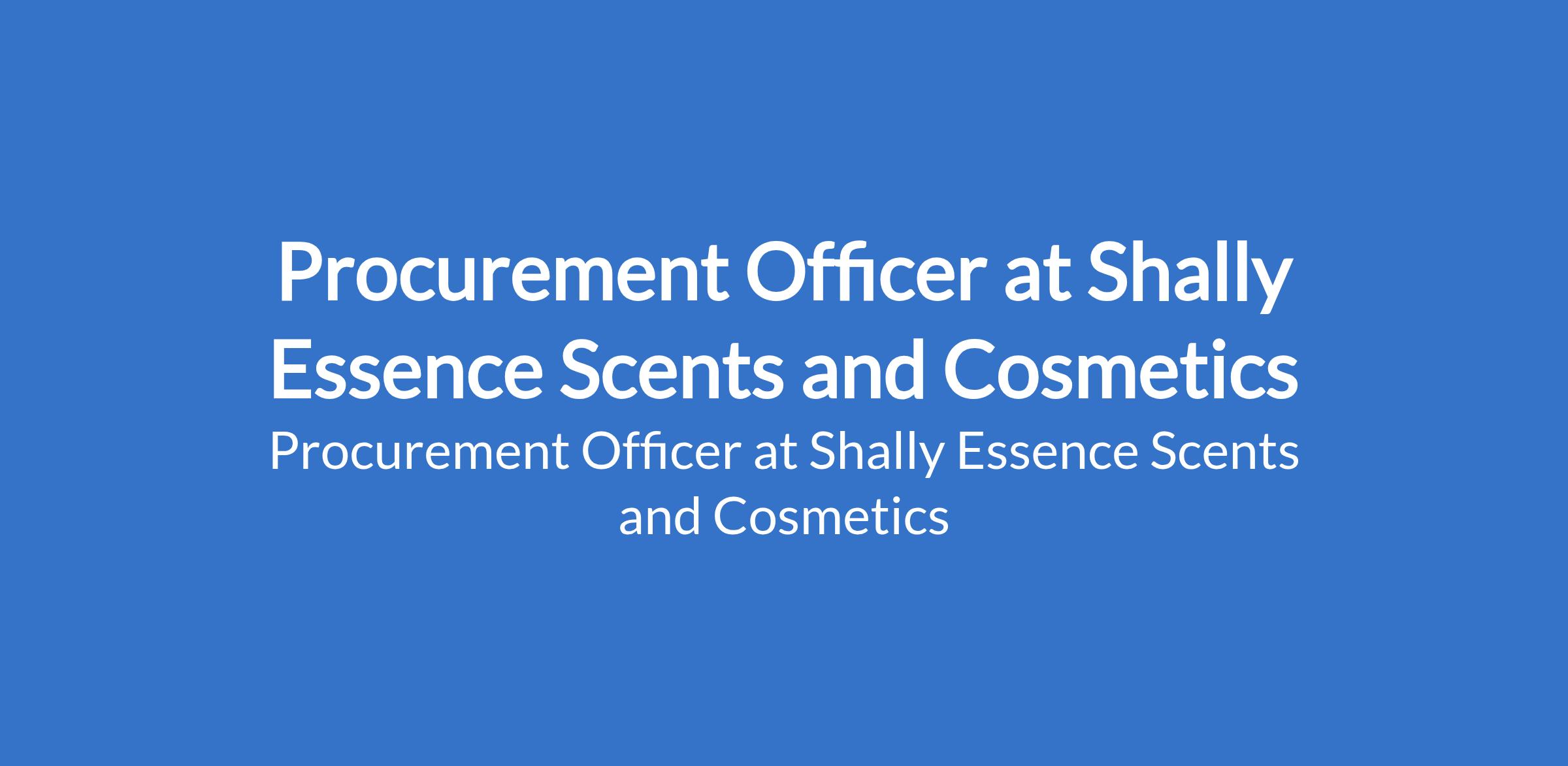 Shally Essence Scents and Cosmetics is recruiting to fill the position of: Procurement Officer. The position is located in Lekki, Lagos State. Salary: N150,000 - N200,000 / month. Interested candidates should possess relevant qualifications with experience.