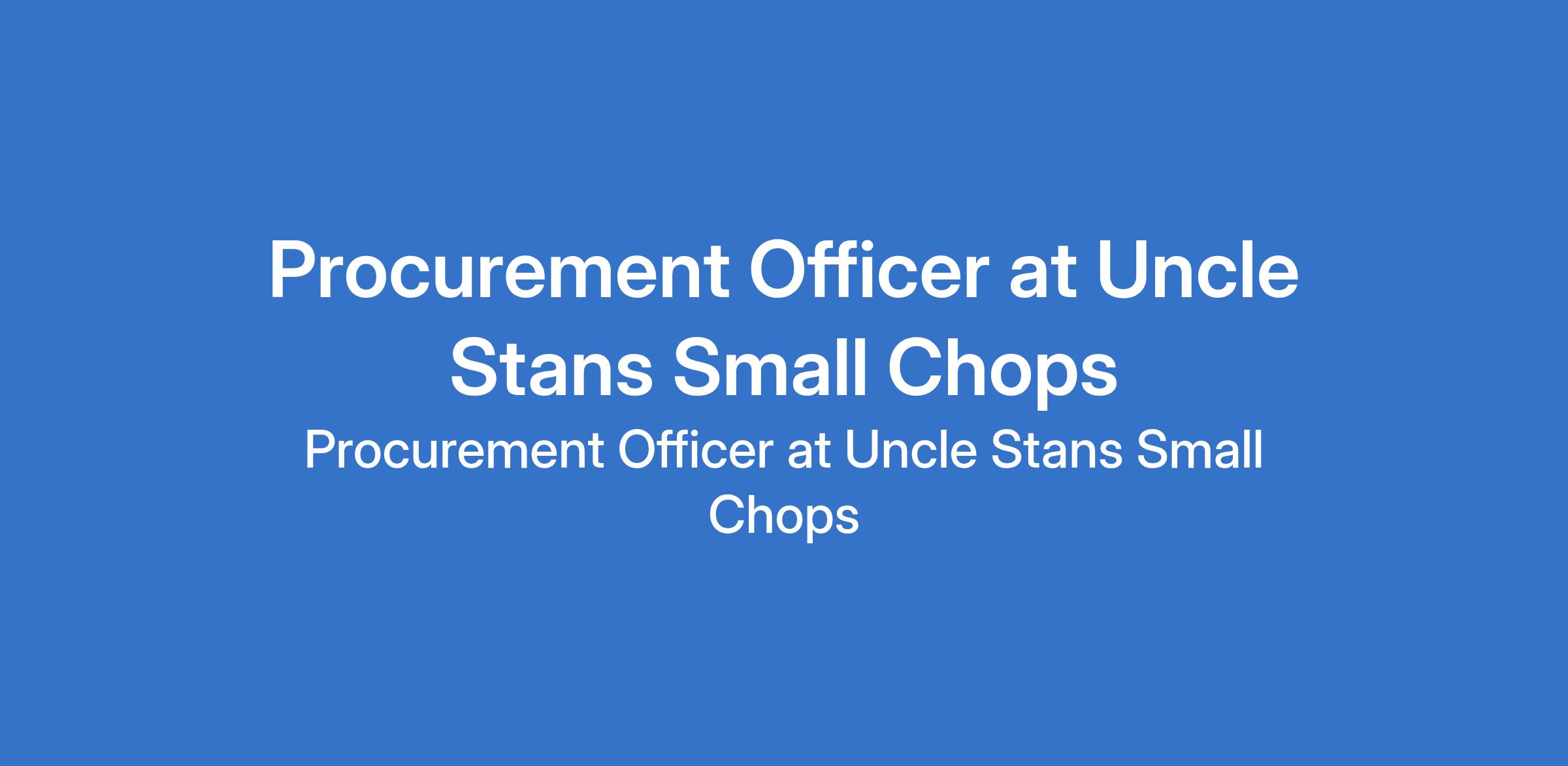 Uncle Stans Small Chops is recruiting to fill the position of: Procurement Officer. The position is located in Lekki, Lagos State. Interested candidates should possess an HND or Bachelors Degree in Procurement, Supply Chain Management, Business Administration, or any related field.