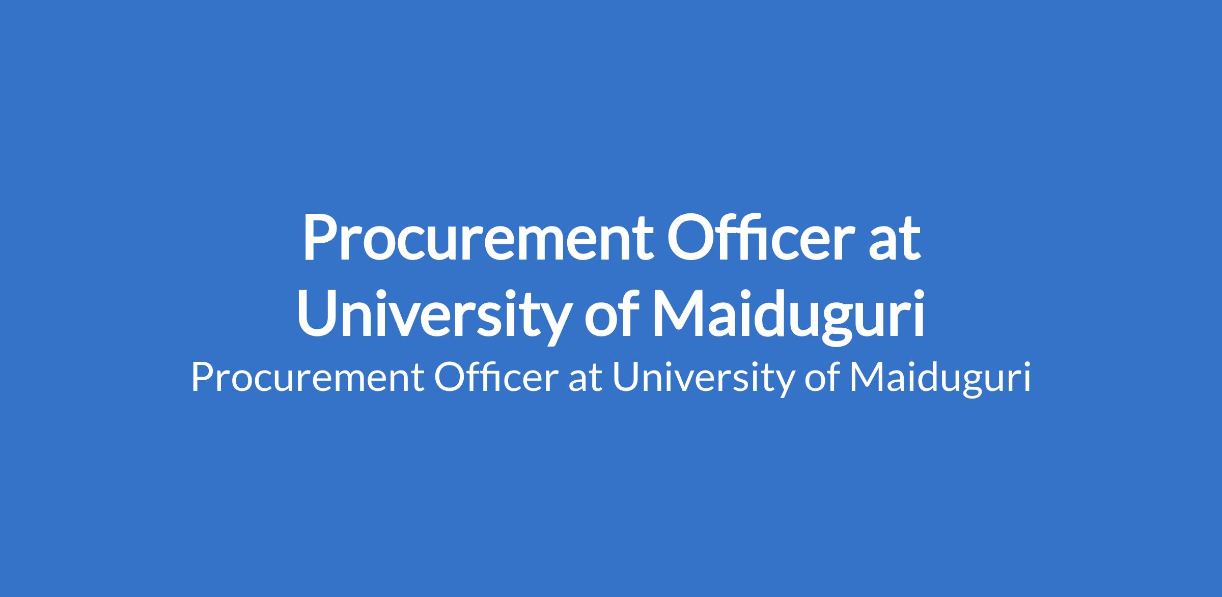 University of Maiduguri invites applications from suitable candidates to fill the position of: Procurement Officer. The position is located in Borno State. Interested candidates should possess a BA/B.Sc. in Marketing, Economics, Purchasing and Supply, Public Relations/Advertising, Business Management/Administration, Entrepreneurship or Capital Market with relevant work experience.