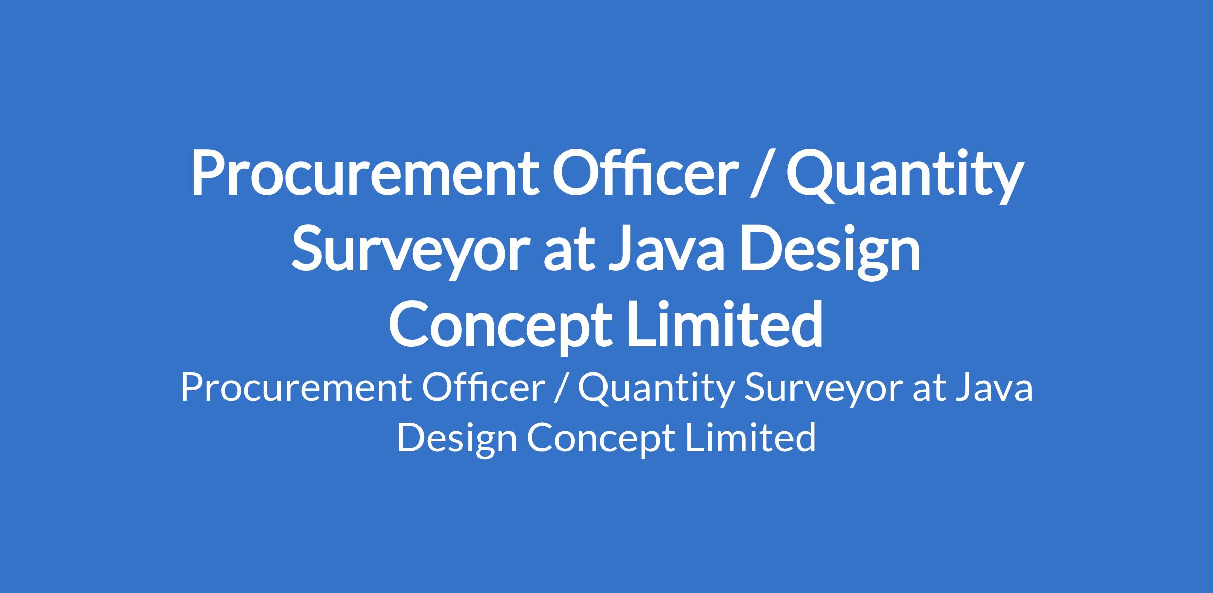 Java Design Concept Limited is recruiting to fill the position of: Procurement Officer / Quantity Surveyor. The position is located in Abuja. The ideal candidate will play a key role in sourcing, negotiating, and managing the procurement of materials, services, and contracts in line with project specifications and budgetary requirements. Interested candidates should possess a Bachelors Degree in Quantity Surveying (mandatory); Professional certification or membership (e.g., NIQS) is an added advantage with 25 years relevant experience in procurement, construction, or project management.