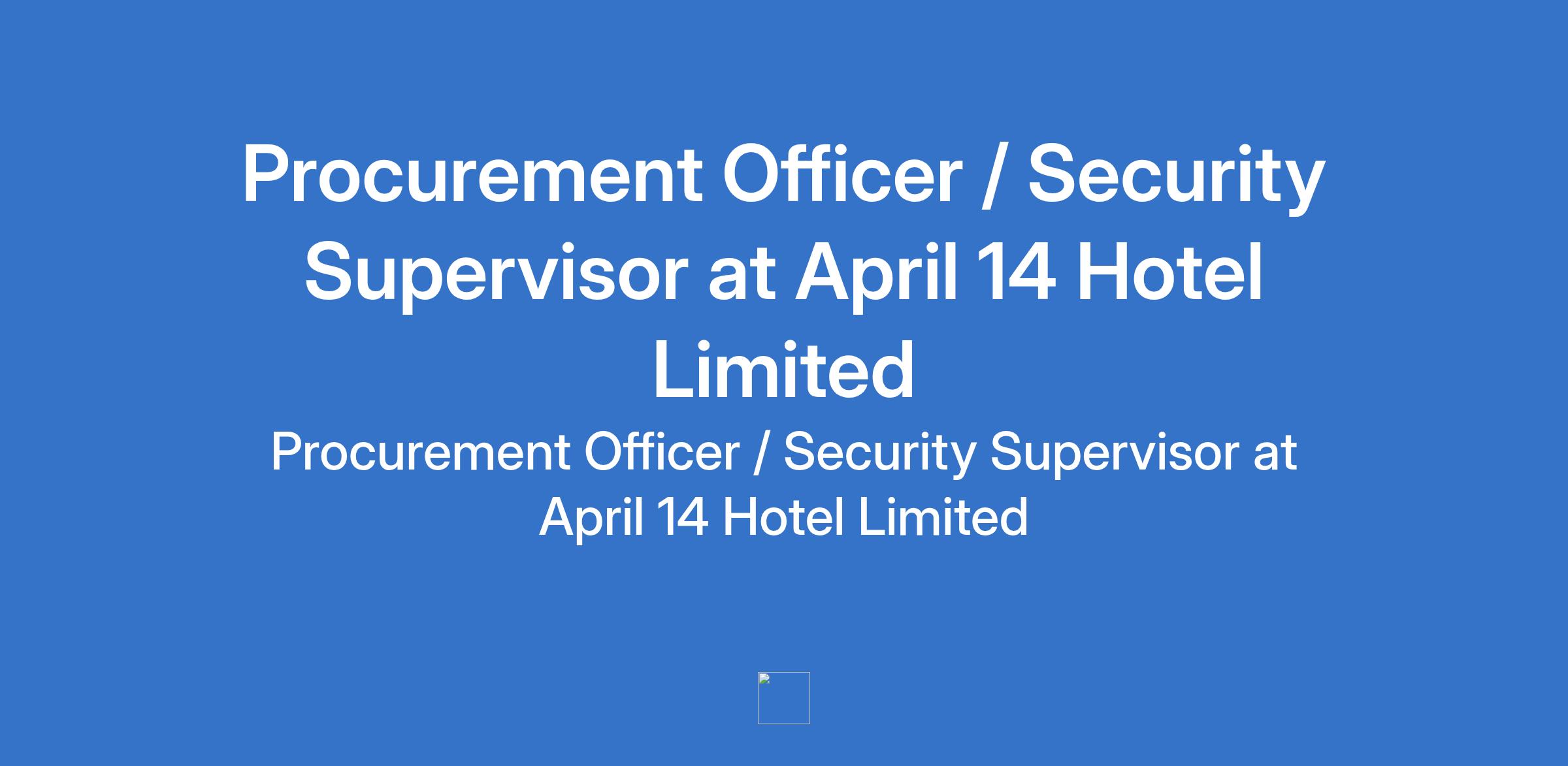April 14 Hotel Limited is recruiting to fill the position of: Procurement Officer / Security Supervisor. The position is located in Awka, Anambra State. Salary: N50,000 - N70,000 per month. Interested candidates should possess an OND / HND / B.Sc Degree in Business Administration, Procurement, Logistics, Security Management, or related fields.