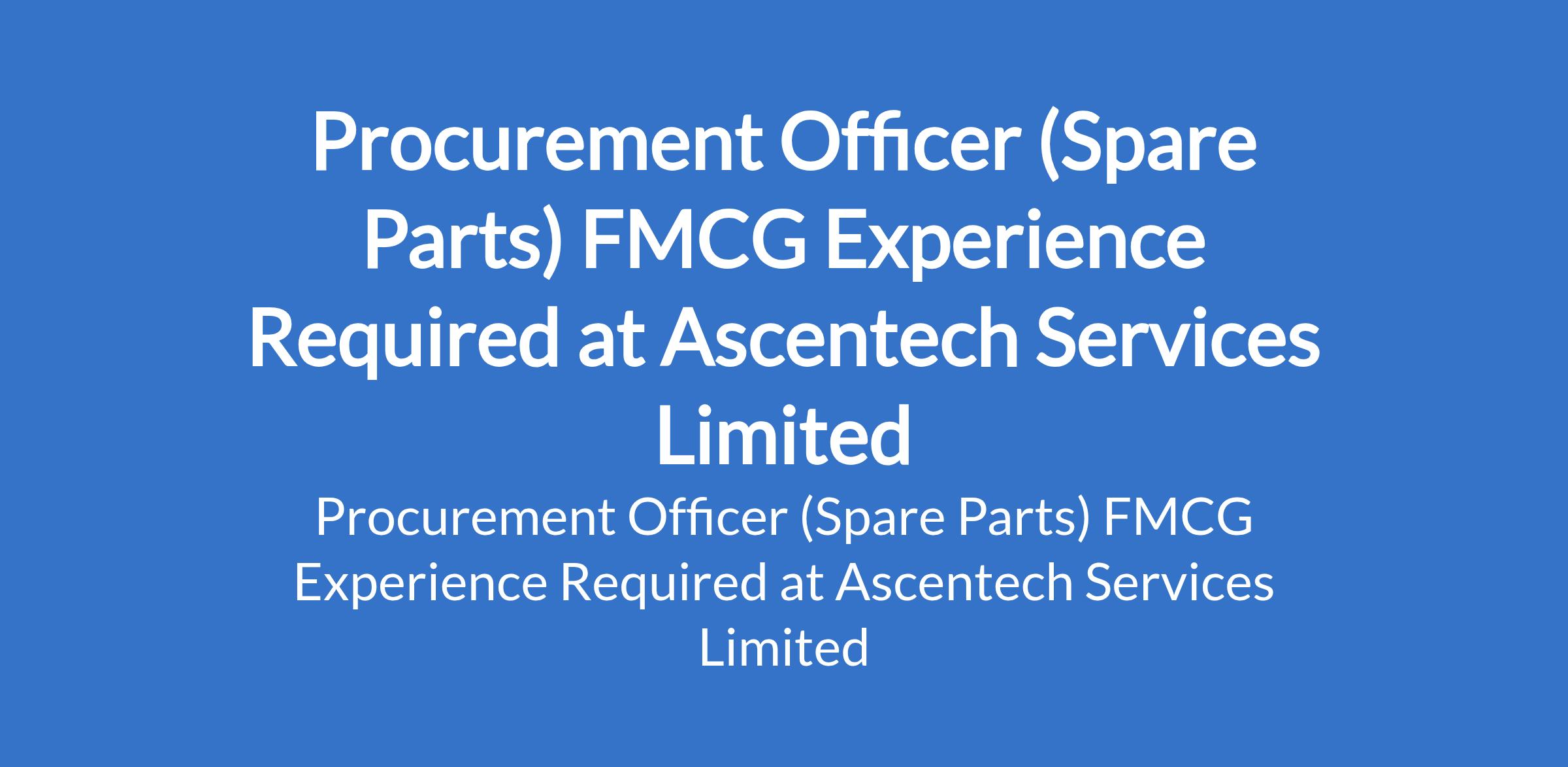 Ascentech Services Limited is recruiting to fill the position of: Procurement Officer (Spare Parts) FMCG Experience Required. The position is located in Ibadan, Oyo State. Interested candidates should possess a Bachelors Degree in Supply Chain, Procurement, Business Administration, Engineering, or a related field with 3 5 years of experience as a Procurement Officer (or similar role).