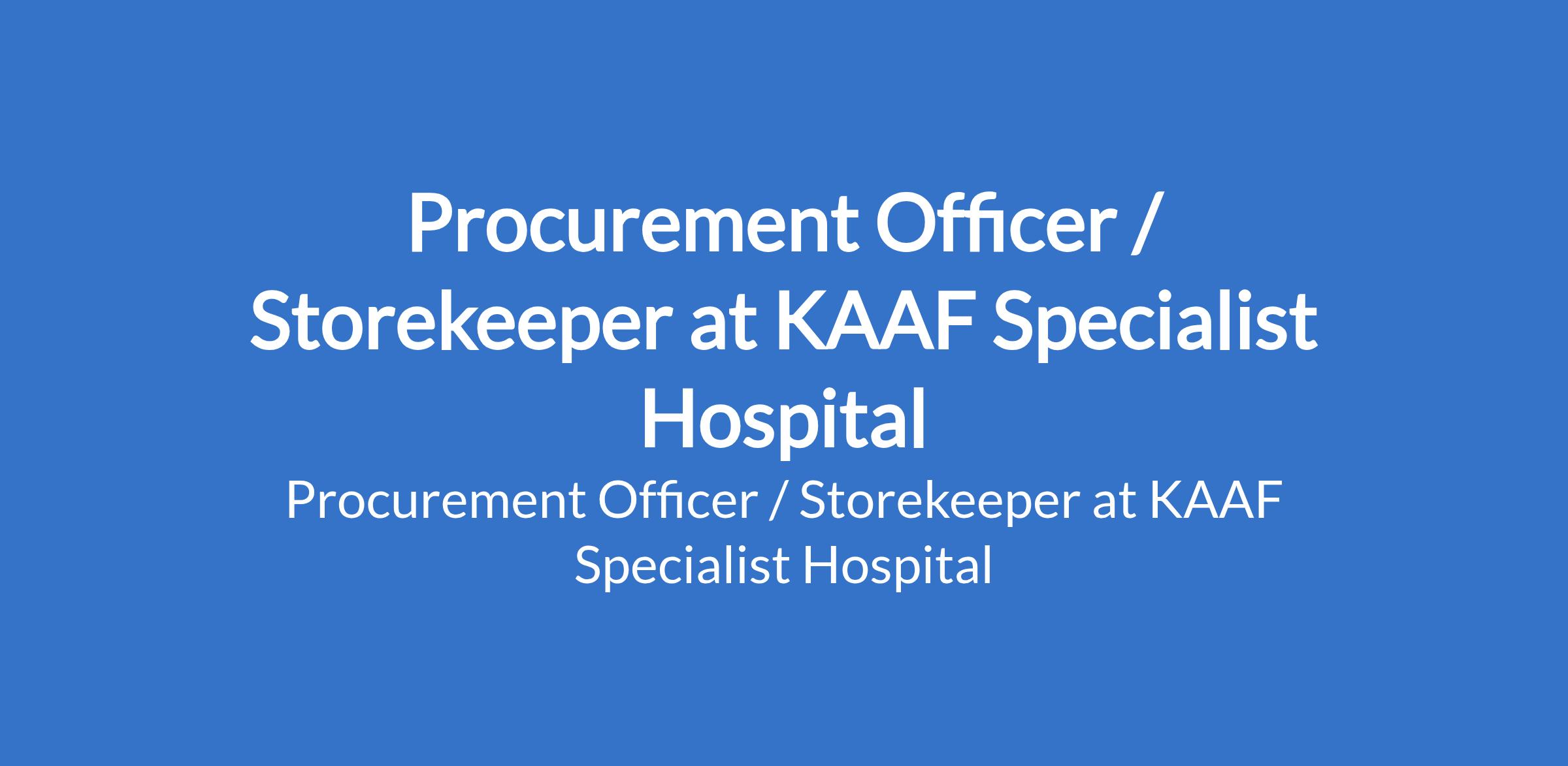 KAAF Specialist Hospital is recruiting to fill the position of: Procurement Officer / Storekeeper. The position is located in Yaba, Lagos State. Salary: N160,000 - N180,000 monthly. Interested candidates should possess at least a Bachelor's Degree in any related discipline and must have at least 1 year experience in storekeeping/inventory.