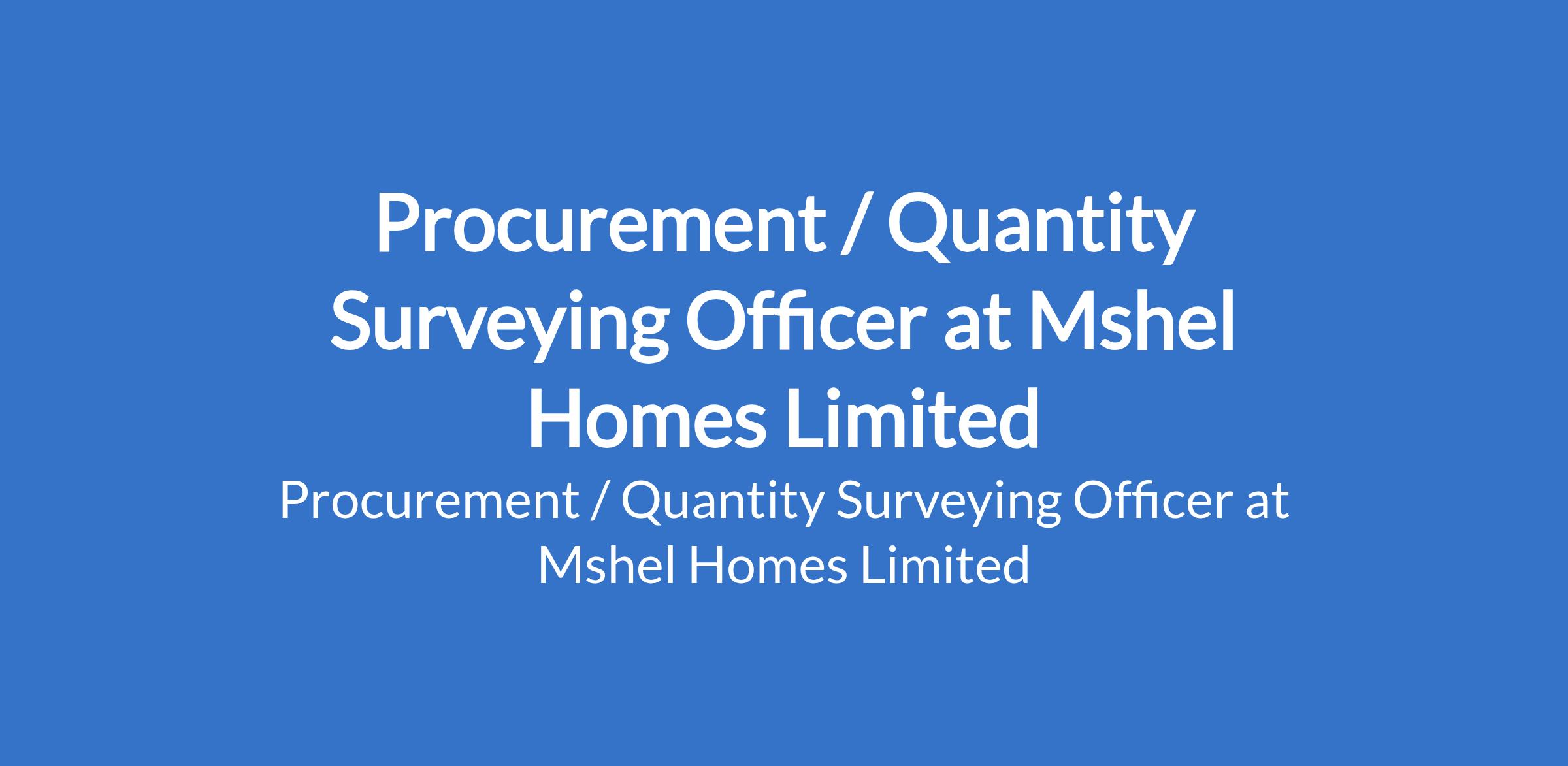 Mshel Homes Limited is recruiting to fill the position of: Procurement / Quantity Surveying Officer. The position is located in Lagos State. Salary: N200,000 - N300,000 monthly. Interested candidates should possess a Bachelors Degree in Quantity Survey, Supply Chain Management, Business Administration, or a related field.
