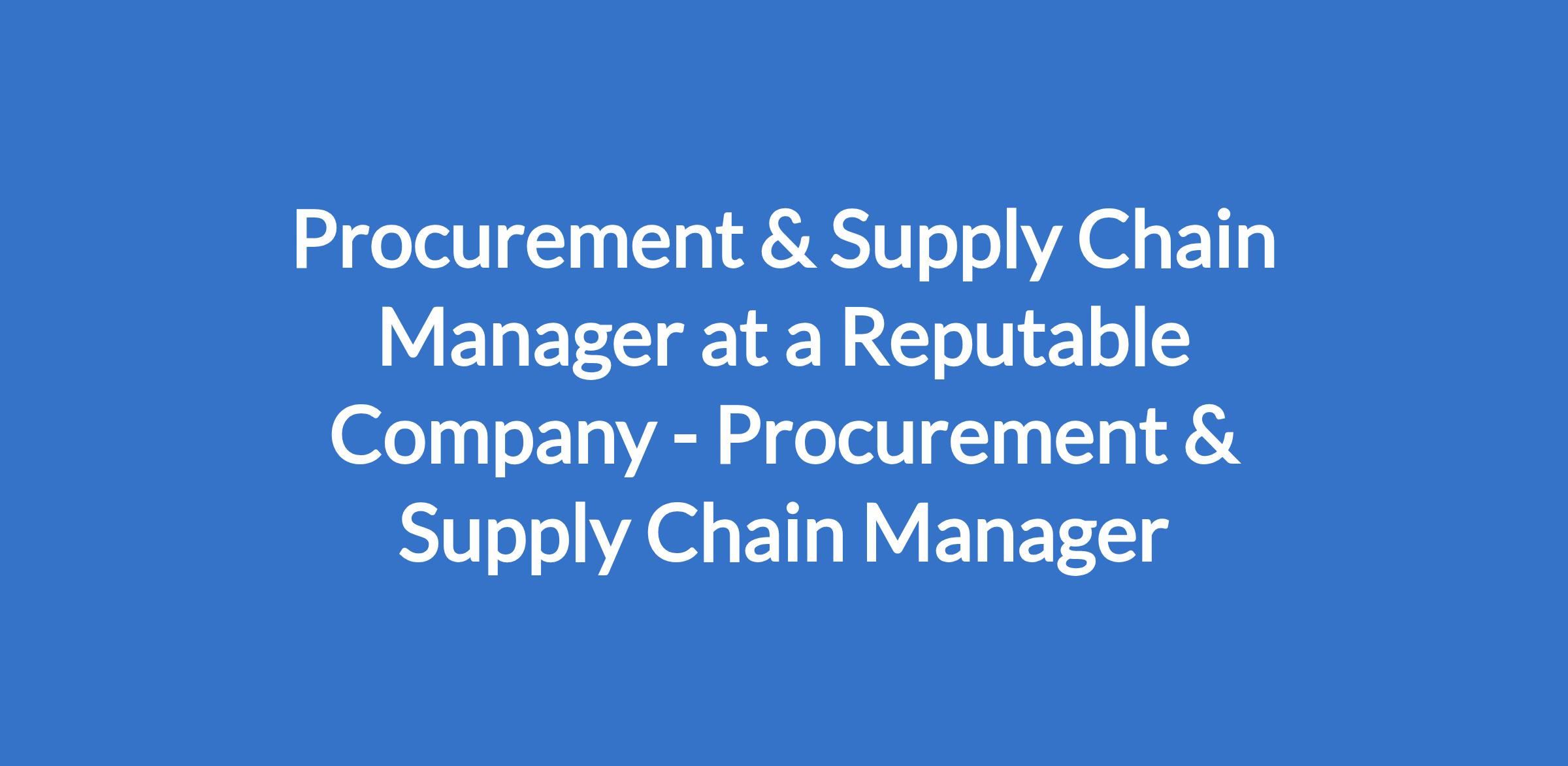 Procurement & Supply Chain Manager at a Reputable Company - Procurement & Supply Chain Manager
