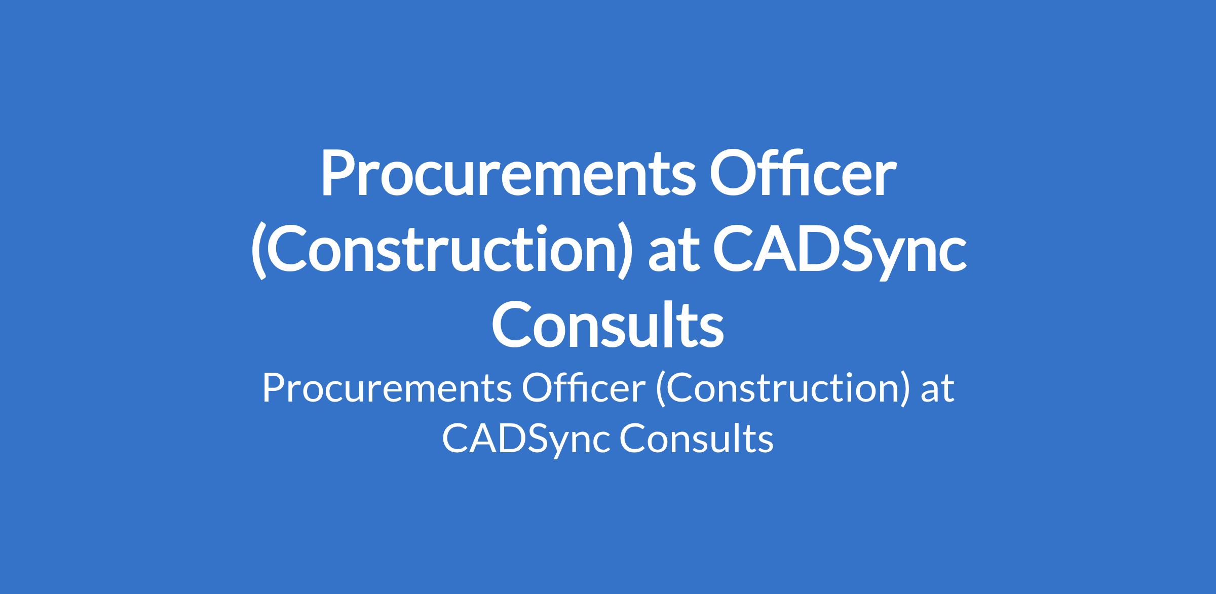 CADSync Consults is recruiting to fill the position of: Procurements Officer (Construction). The position is located in Abuja (FCT). Salary: N180,000 - N200,000 / month. Interested candidates should possess a Bachelors Degree in Procurement, Supply Chain Management, Business Administration, or a related field with experience with procurements in the construction space.