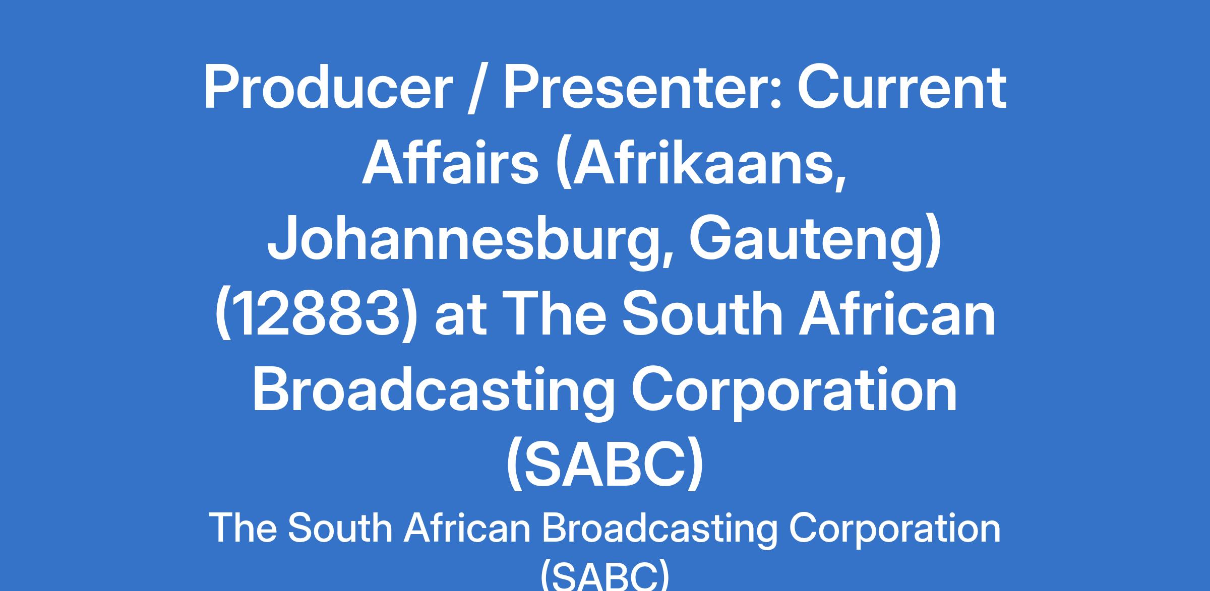 To produce and present Afrikaans Audio News and Current Affairs content and programmes as part of a team that broadcasts, publishes and posts newsworthy, compelling, accurate and fair stories for its target audience.