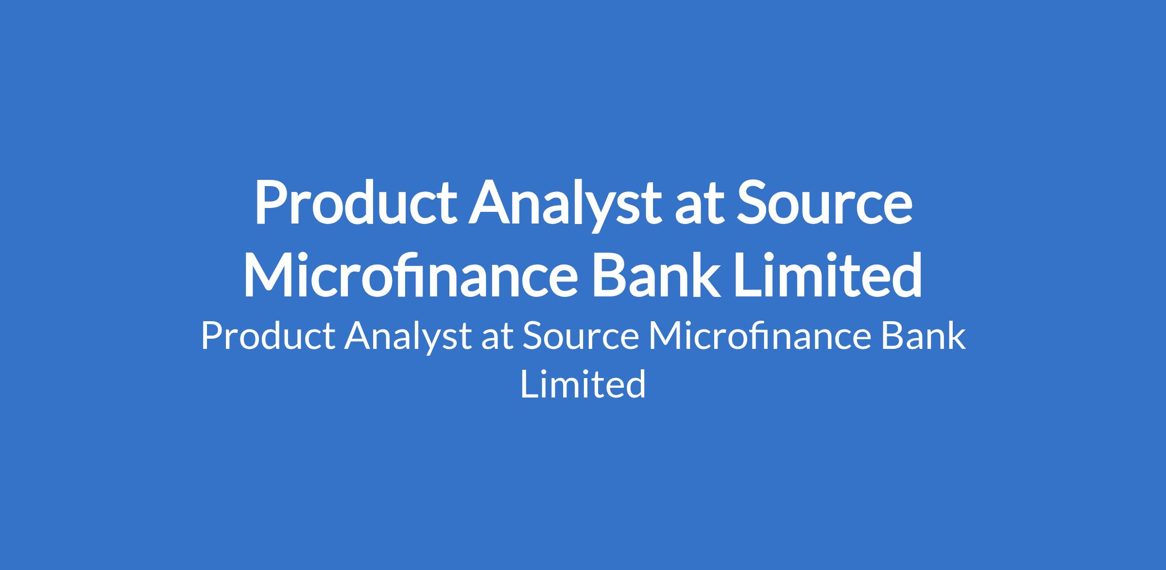 Source Microfinance Bank Limited is recruiting to fill the position of: Product Analyst. The position is located in Lagos State. Interested candidates should possess relevant qualifications with 4-7 years of combined experience as a Business Analyst and/or Product Manager, specifically within the Banking or Financial Services industry.