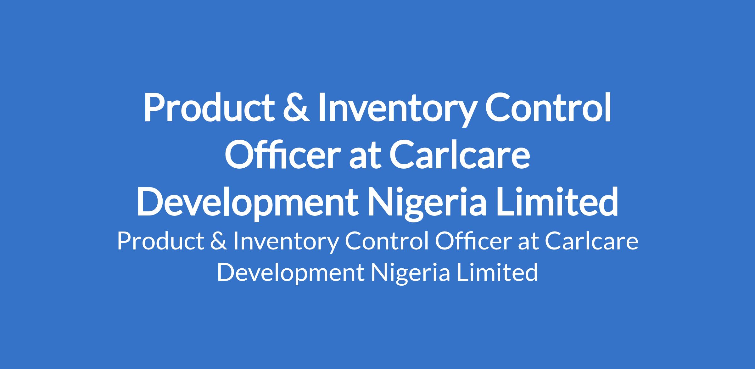 Carlcare Development Nigeria Limited is recruiting to fill the position of: Product & Inventory Control Officer. The position is located in Lagos State. Interested candidates should possess a Degree or HND qualification in Supply Chain, Logistics, or a related field with at least 2 years of experience in logistics, inventory, or material control.