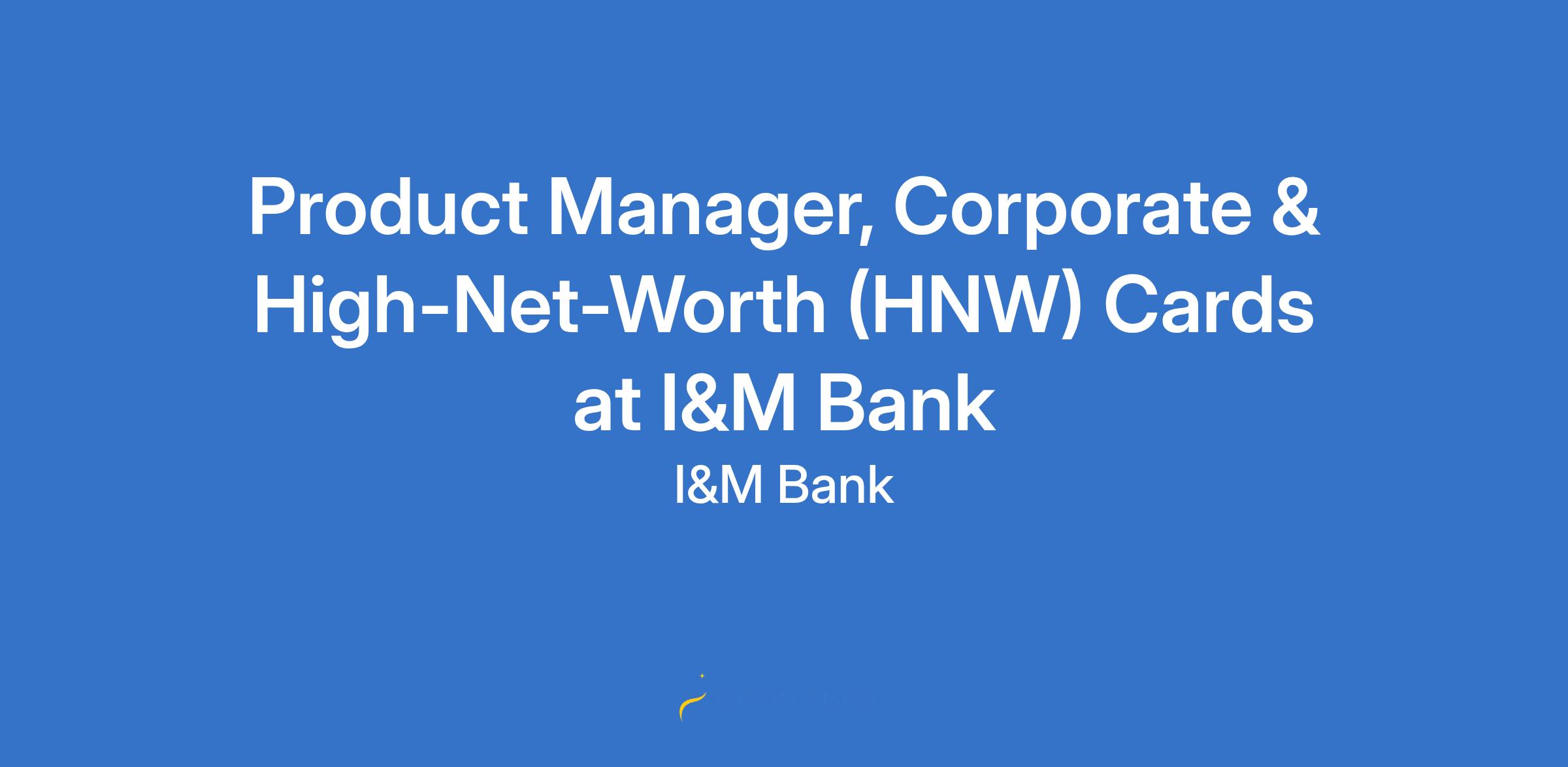 Product Manager, Corporate & High-Net-Worth (HNW) Cards at I&M Bank