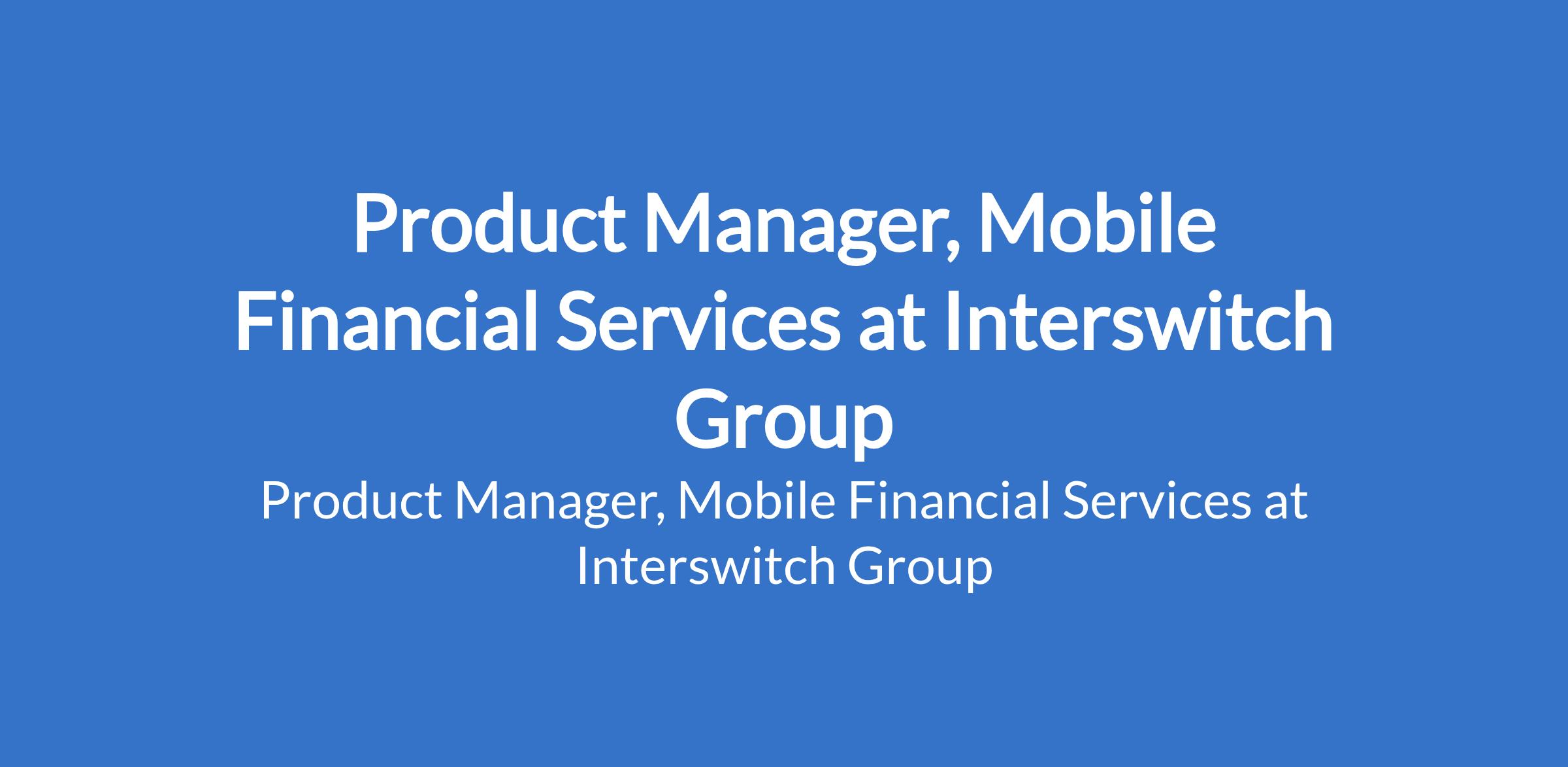 Interswitch Group is recruiting to fill the position of: Product Manager, Mobile Financial Services. The position is located in Lagos State. Interested candidates should possess a good First Degree in relevant fields / disciplines with a minimum of 5 years experience as a product manager with preferred experience in data-driven, highly competitive, complex, dynamic and digital environments such as payments & fintech, financial services, e-commerce, telecoms.