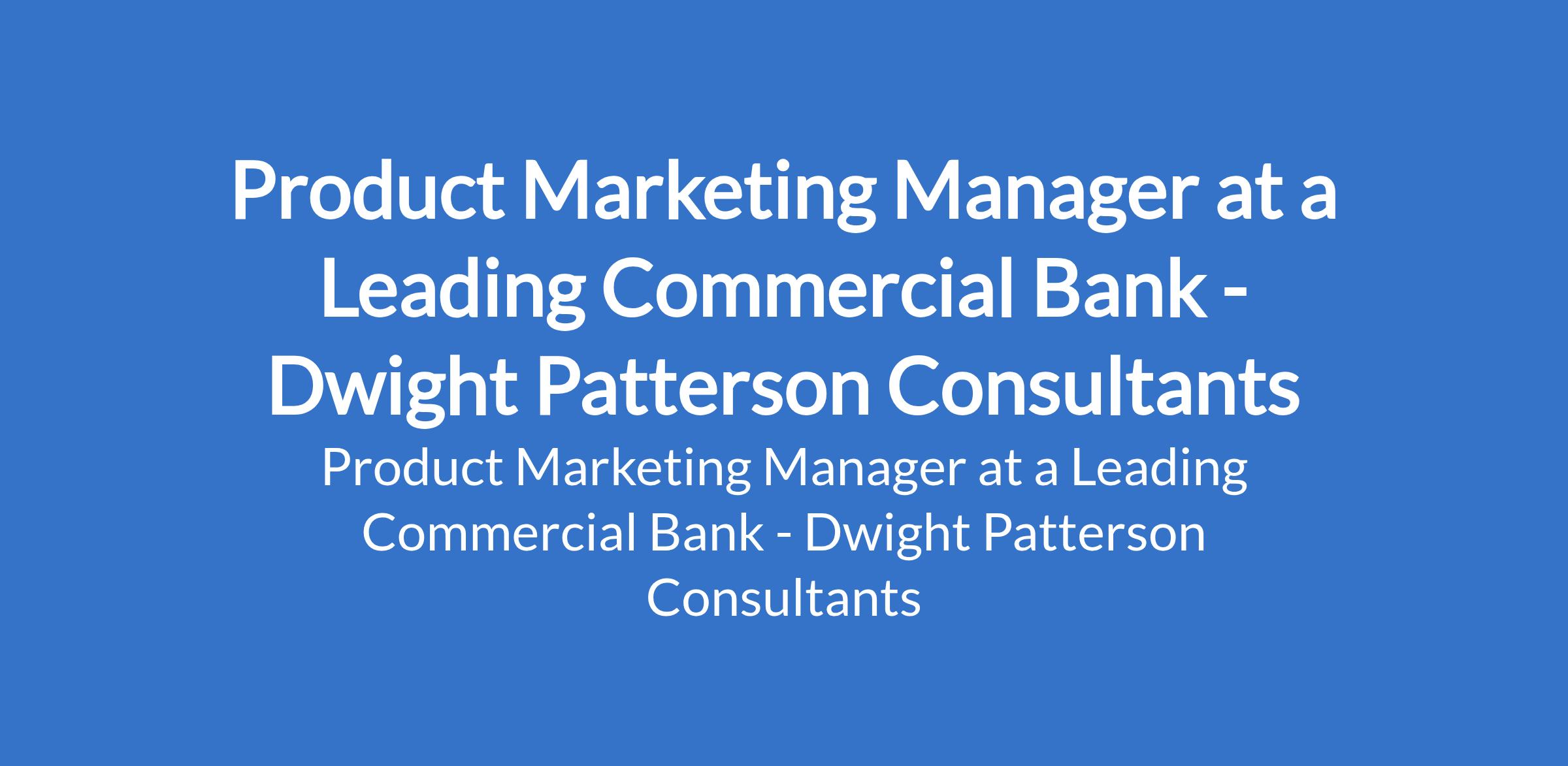 Product Marketing Manager at a Leading Commercial Bank - Dwight Patterson Consultants