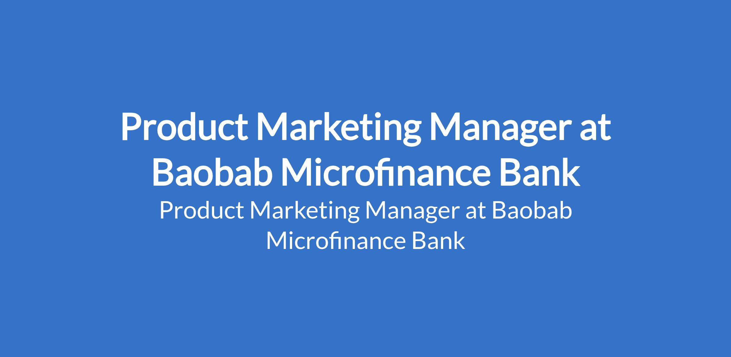 Baobab Microfinance Bank is recruiting to fill the position of: Product Marketing Manager. The position is located in Yaba, Lagos State. Interested candidates should possess a Bachelors Degree in Marketing, Business, Economics, or a related field (MBA or equivalent is a plus) with 3 6 years of experience in product marketing, growth marketing, or digital financial services.