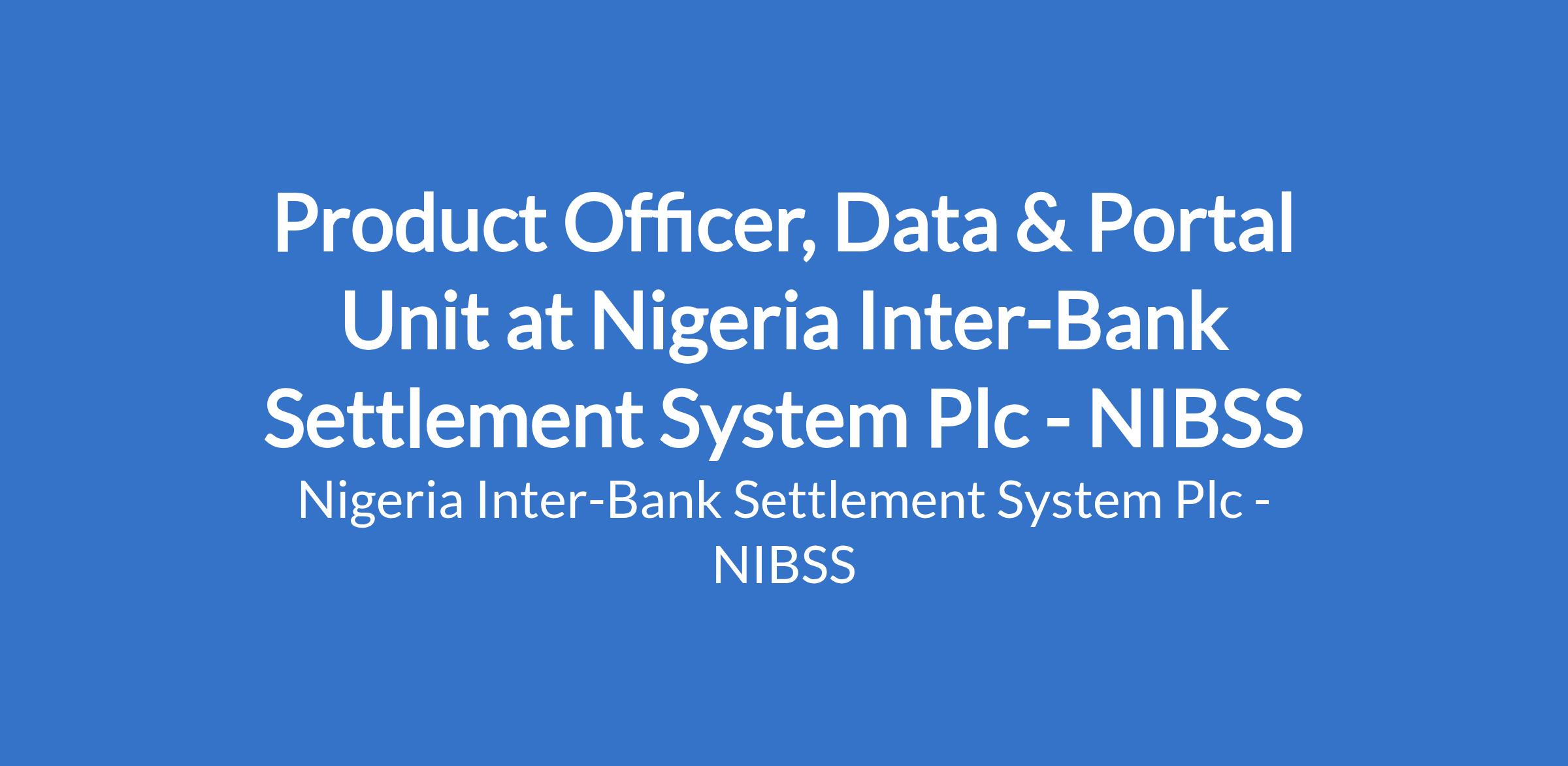 Product Officer, Data & Portal Unit at Nigeria Inter-Bank Settlement System Plc - NIBSS