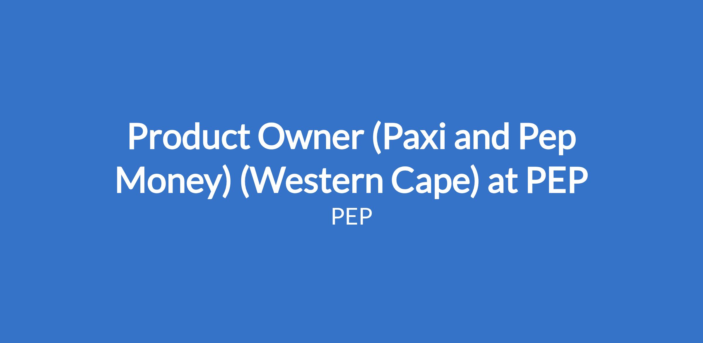 Product Owner (Paxi and Pep Money) (Western Cape) at PEP