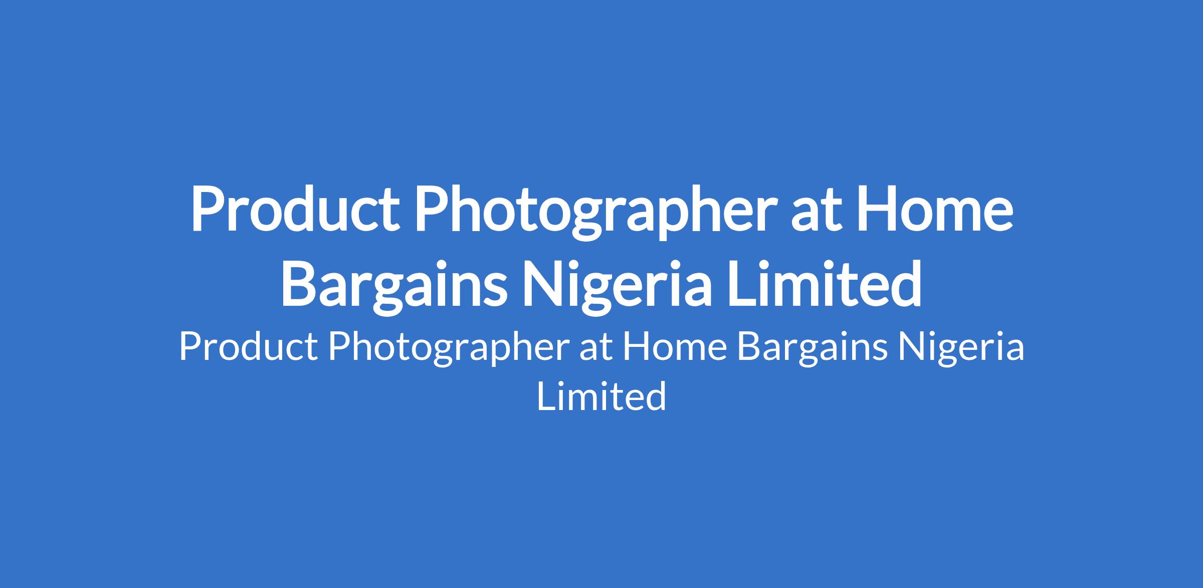 Home Bargains Nigeria Limited is recruiting to fill the position of: Product Photographer. The position is located in Wuse Zone 1, Abuja (FCT). Salary N100,000 monthly. Interested candidates should possess an HND or Bachelor's Degree in Visual Arts, Media, Digital Arts, or a related creative field with 2 3 years of professional experience in product photography, ecommerce photography, or retail visual content creation.