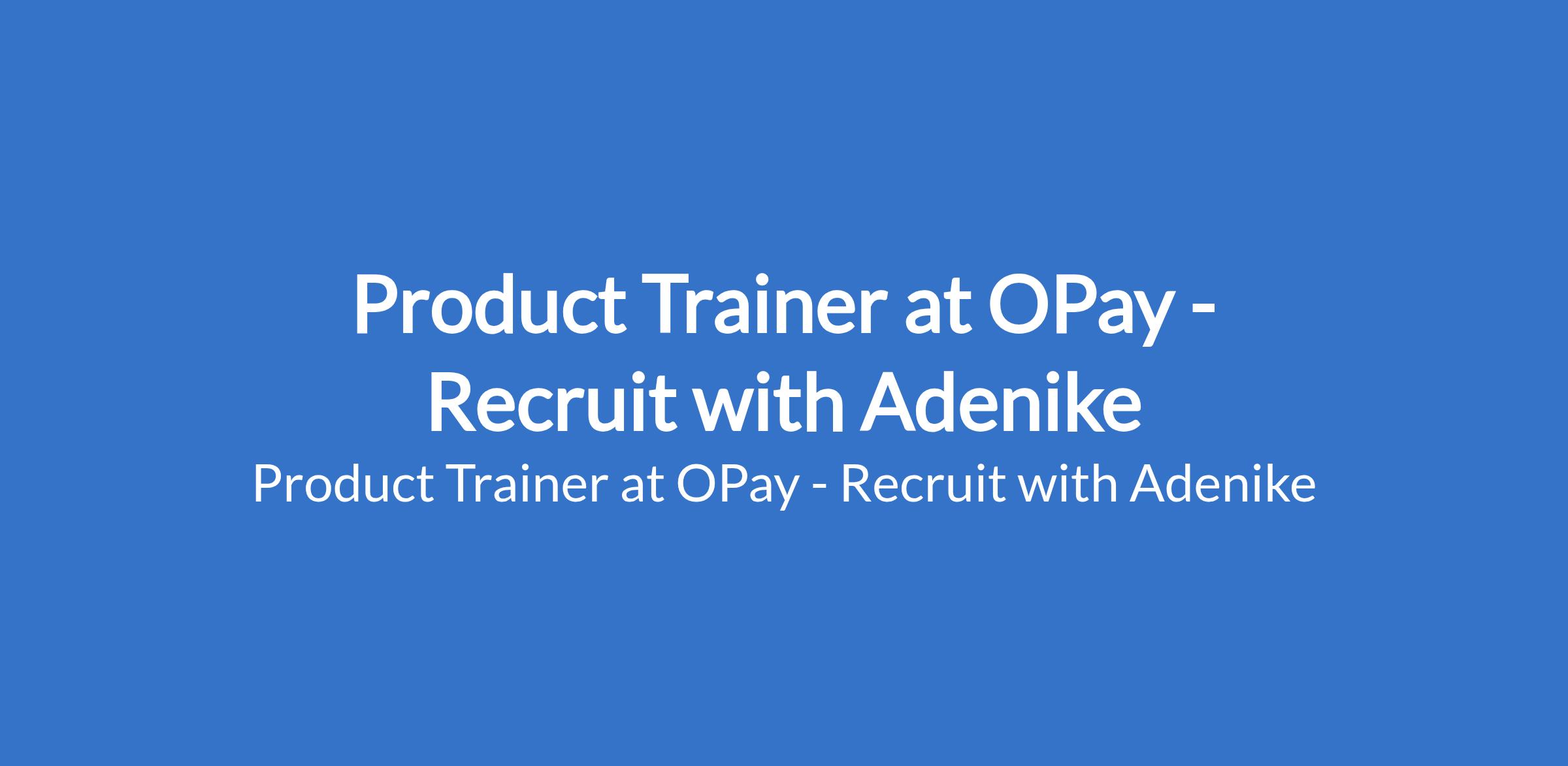 Recruit with Adenike - Our client, OPay is recruiting to fill the position of: Product Trainer. The position is located in Ikeja, Lagos State. Interested candidates should possess a Bachelors Degree in Marketing, Business Administration, Communications, Design, or a related field with 3 - 5 years of experience in product training, marketing, brand communication, or a similar role (preferably within fintech or financial services).