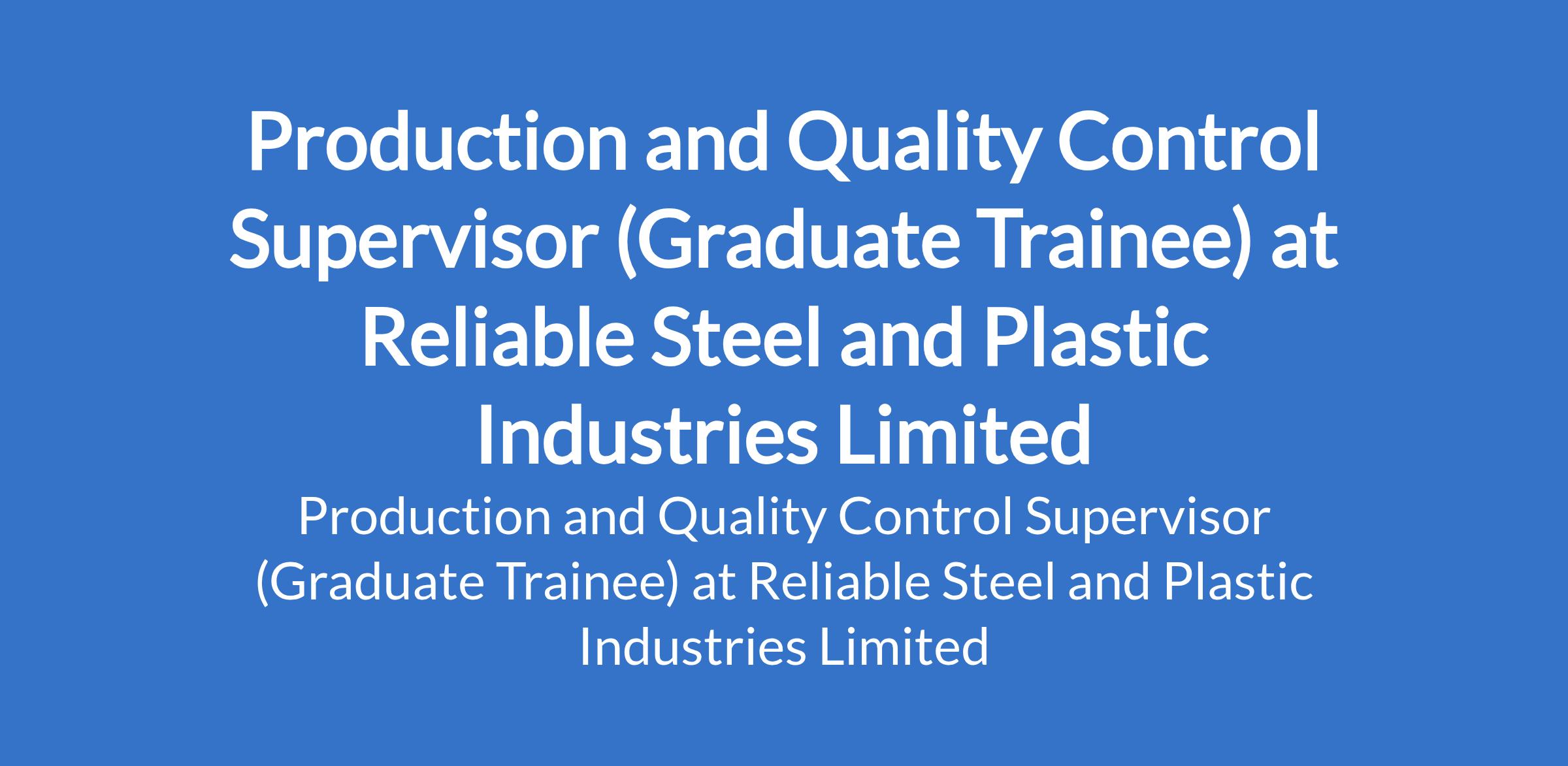 Reliable Steel and Plastic Industries Limited is recruiting to fill the position of: Production and Quality Control Supervisor (Graduate Trainee). The position is located in Onitsha, Anambra State. Interested candidates should possess a Bachelors Degree in Engineering, Industrial Chemistry, Microbiology, or a related field with 02 years of experience (NYSC completed or in progress).