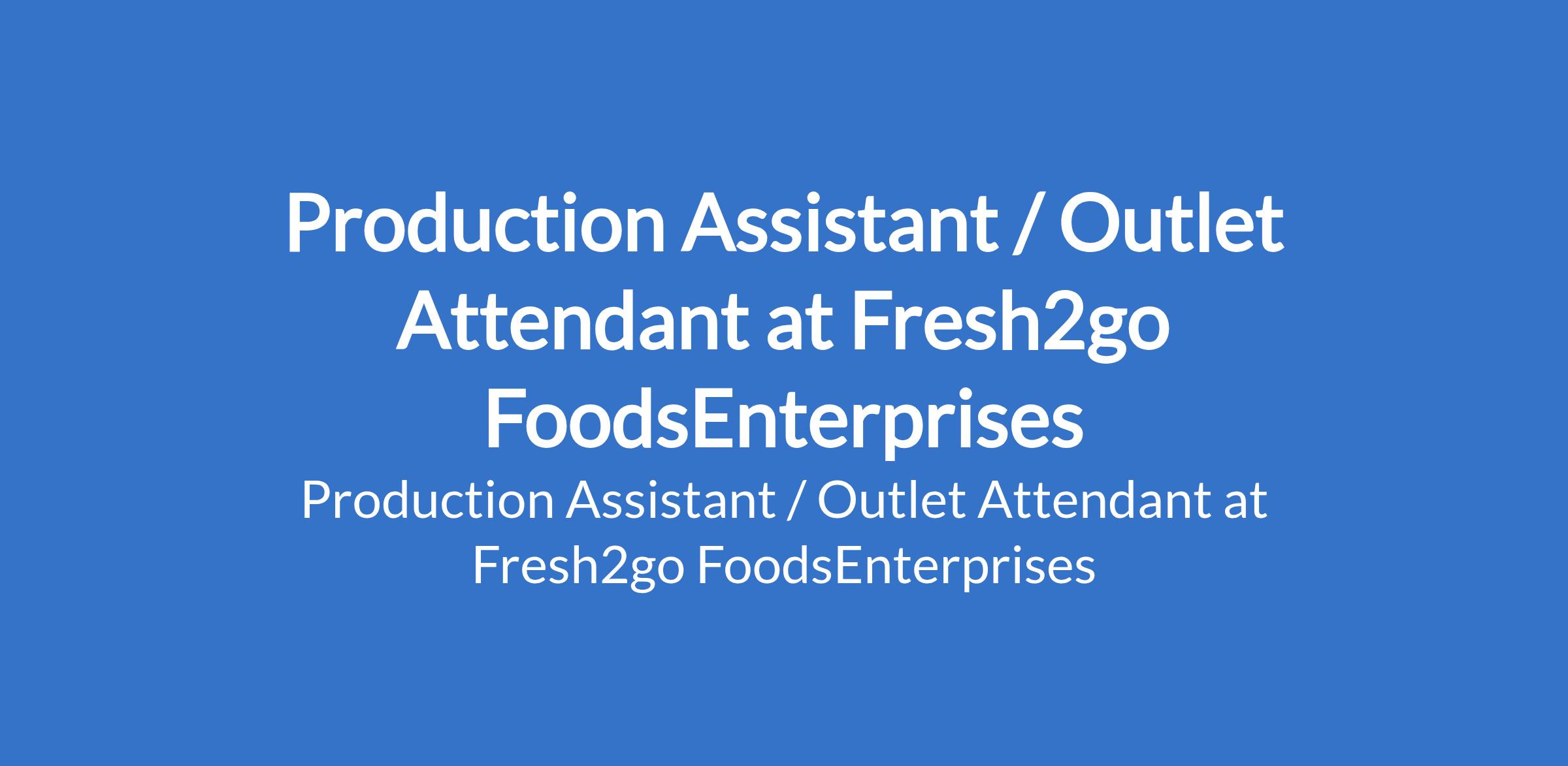 Fresh2go FoodsEnterprises is recruiting to fill the position of: Production Assistant / Outlet Attendant. The position is located in Bodija, Ibadan - Oyo State. Interested candidates should possess an NCE, OND or HND qualification with relevant work experience.