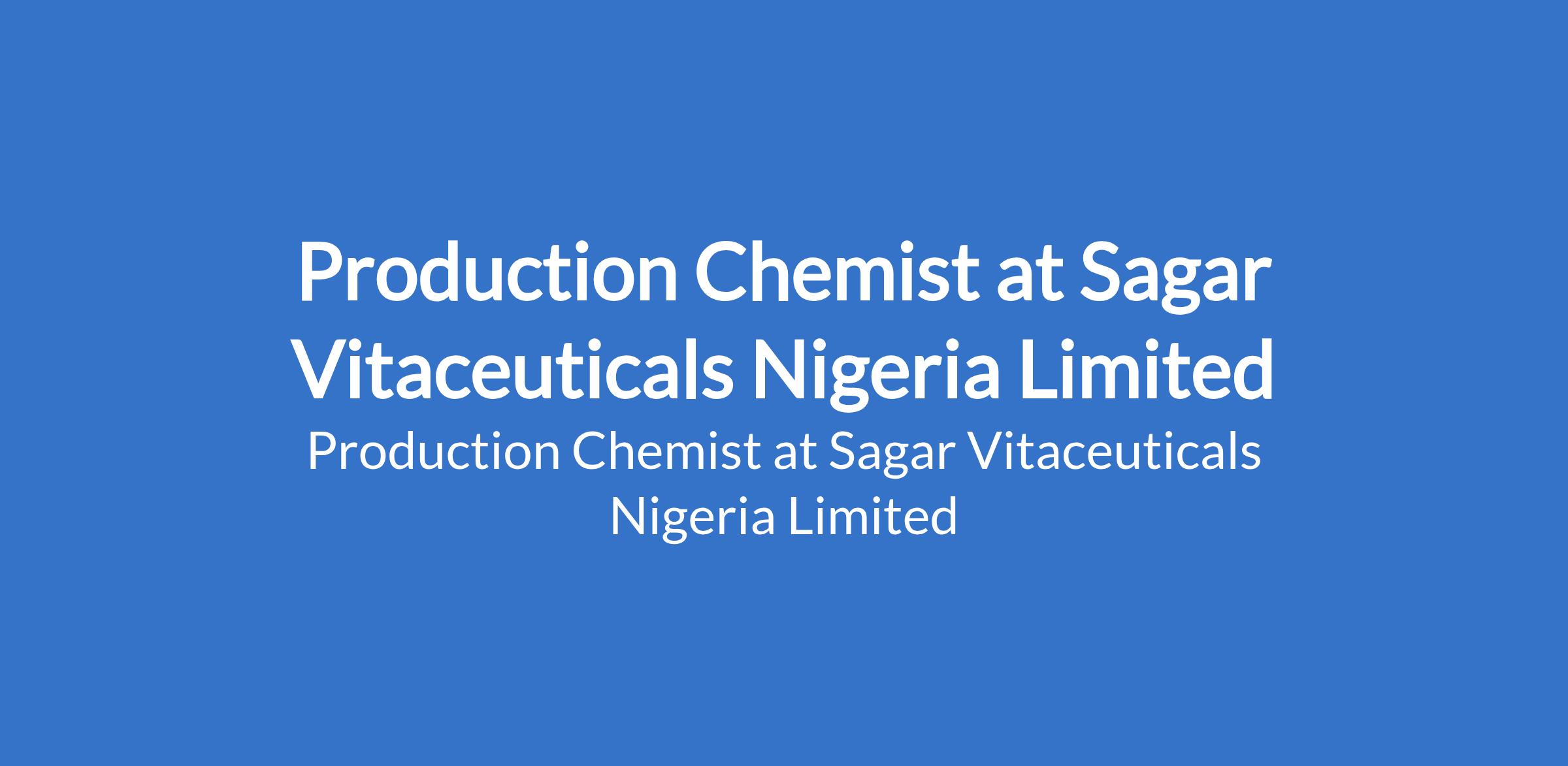 Sagar Vitaceuticals Nigeria Limited is recruiting to fill the position of: Production Chemist. The position is located in Mowe, Ogun State. Interested candidates should possess a Bachelor's Degree with 2 - 6 years of proven experience and strong knowledge of chemical manufacturing processes.