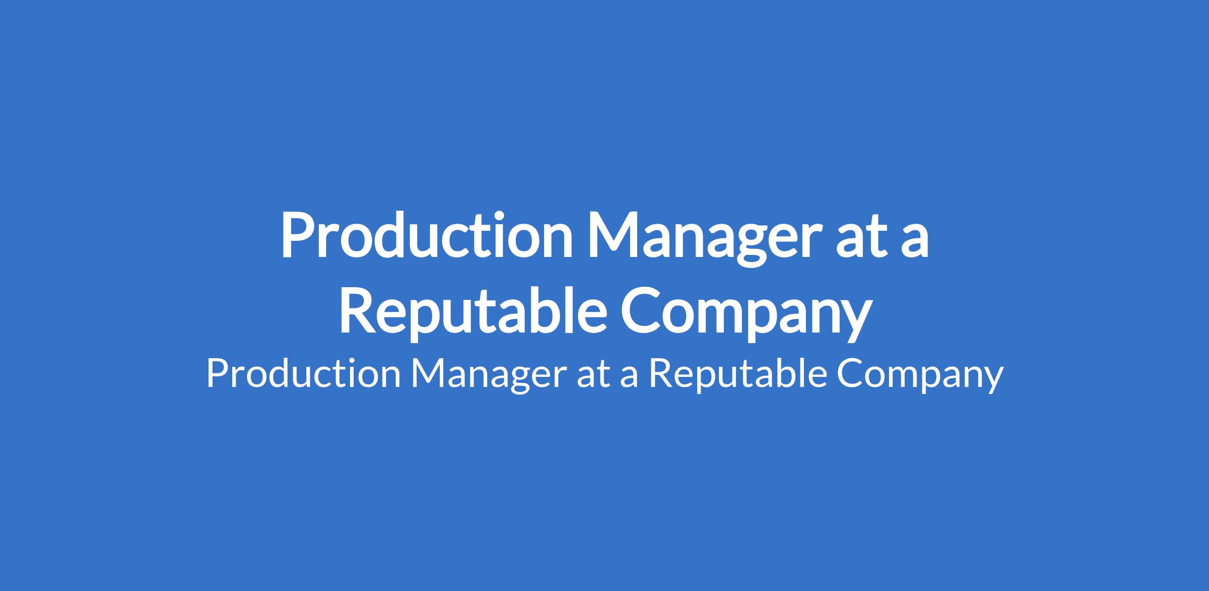 Production Manager at a Reputable Company