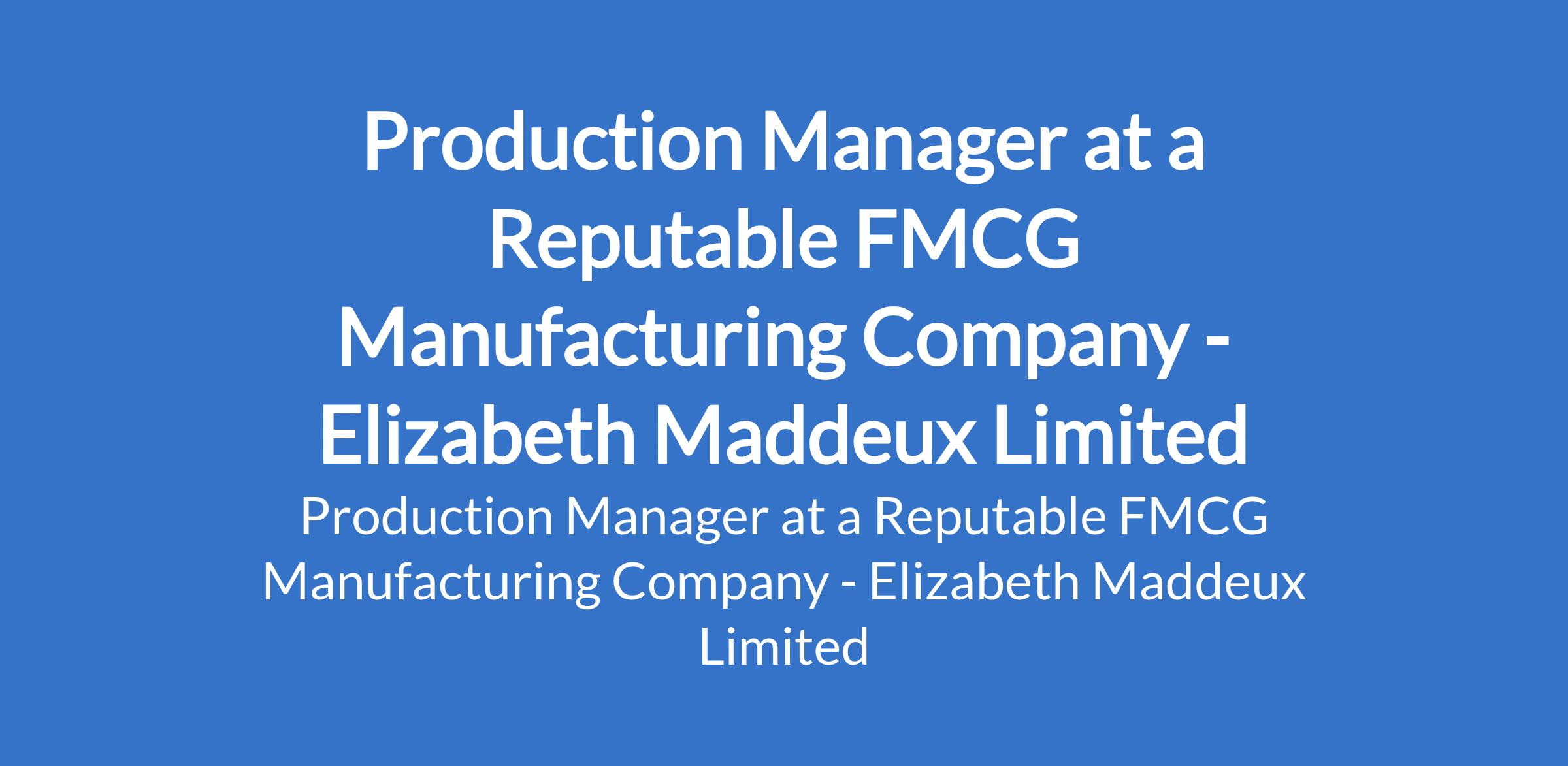 Elizabeth Maddeux Limited - Our client, a reputable FMCG manufacturing company is recruiting to fill the position of: Production Manager. The position is located in Abuja (FCT). Salary: N400,000 - N600,000 per month. Interested candidates should possess a Bachelors Degree or HND in Microbiology, Biochemistry, Food Science and Technology, Chemical Engineering, or related field with a minimum of 4 years experience in FMCG manufacturing, with at least 23 years in a supervisory or managerial role.