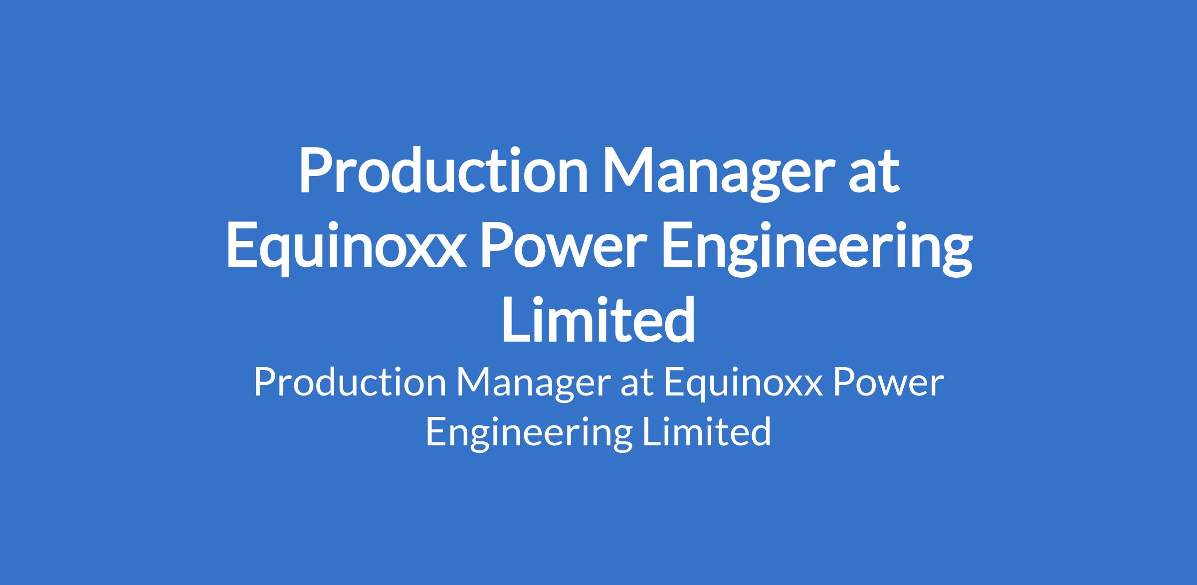 Equinoxx Power Engineering Limited is recruiting to fill the position of: Production Manager. The position is located in Ikeja, Lagos State. Salary: N100,000 - N250,0000 per month. Interested candidates should possess a Bachelor's Degree in Production Management or related fields with 3-5 years of production management experience.
