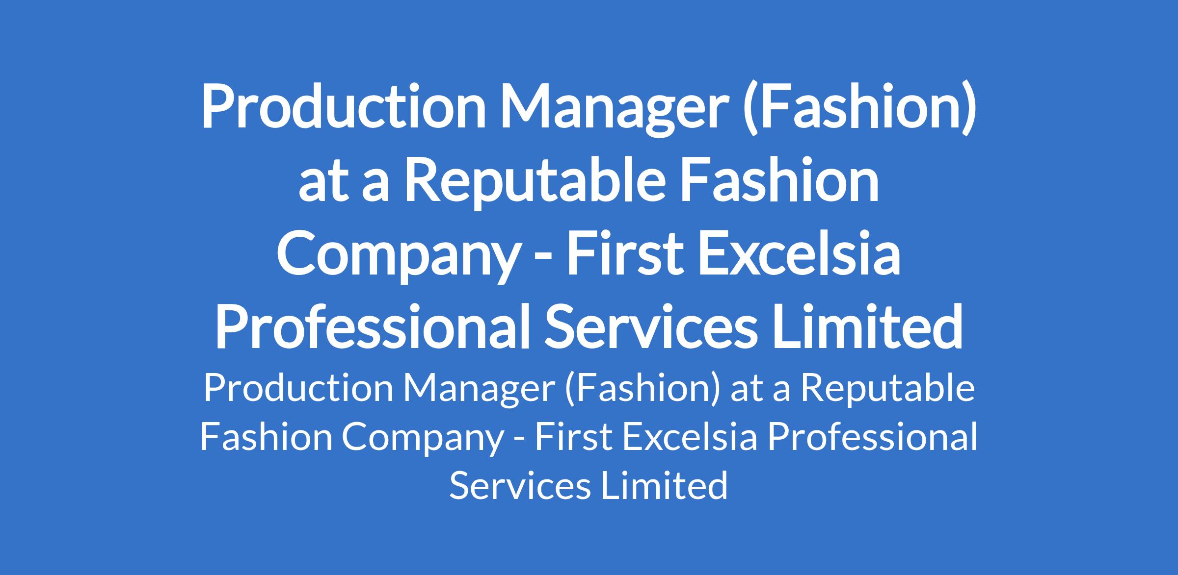 First Excelsia Professional Services Limited - Our client in the fashion industry is recruiting to fill the position of: Production Manager (Fashion). The position is located in Surulere, Lagos State. Salary: N2,400,000 yearly. Interested candidates should possess a Bachelors Degree (BSc) or HND in Fashion Design or a related field with minimum of 4 years experience in a fashion production environment, with supervisory or managerial responsibility.