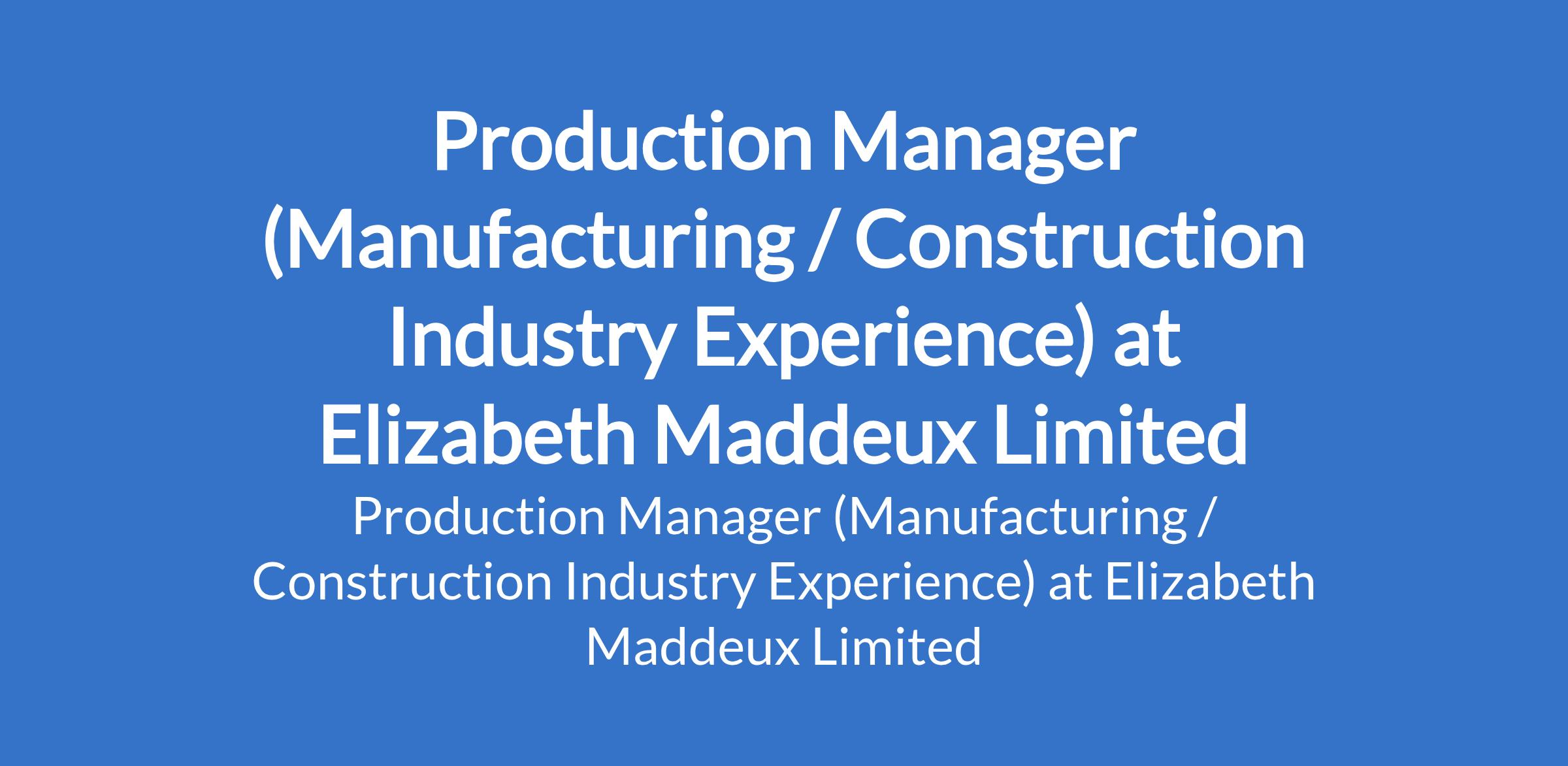 Elizabeth Maddeux Limited is recruiting to fill the position of: Production Manager (Manufacturing / Construction Industry Experience). The position is located in Sagamu, Ogun State. Salary: N400,000 - N500,000 monthly. Interested candidates should possess a Bachelors Degree in Mechanical, Industrial, or Production Engineering (Mastersdegree is an advantage) with 5 7 years of progressive experience in production or manufacturingmanagement within construction or industrial environments.