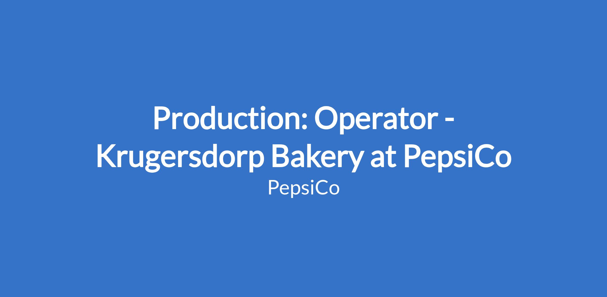 Production: Operator - Krugersdorp Bakery at PepsiCo