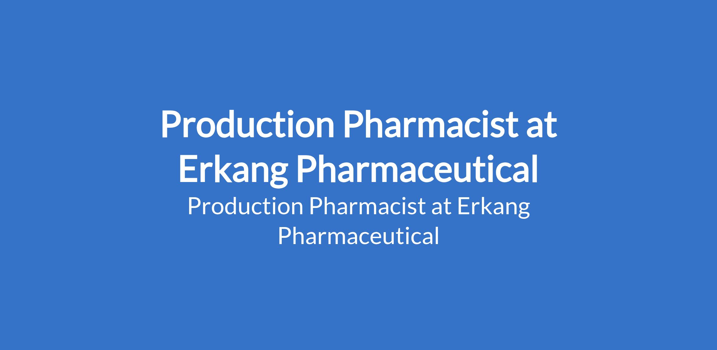 Production Pharmacist at Erkang Pharmaceutical