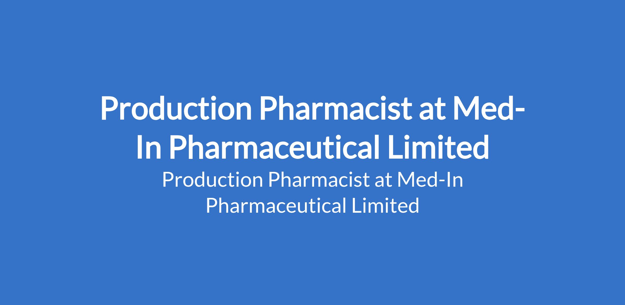 Production Pharmacist at Med-In Pharmaceutical Limited
