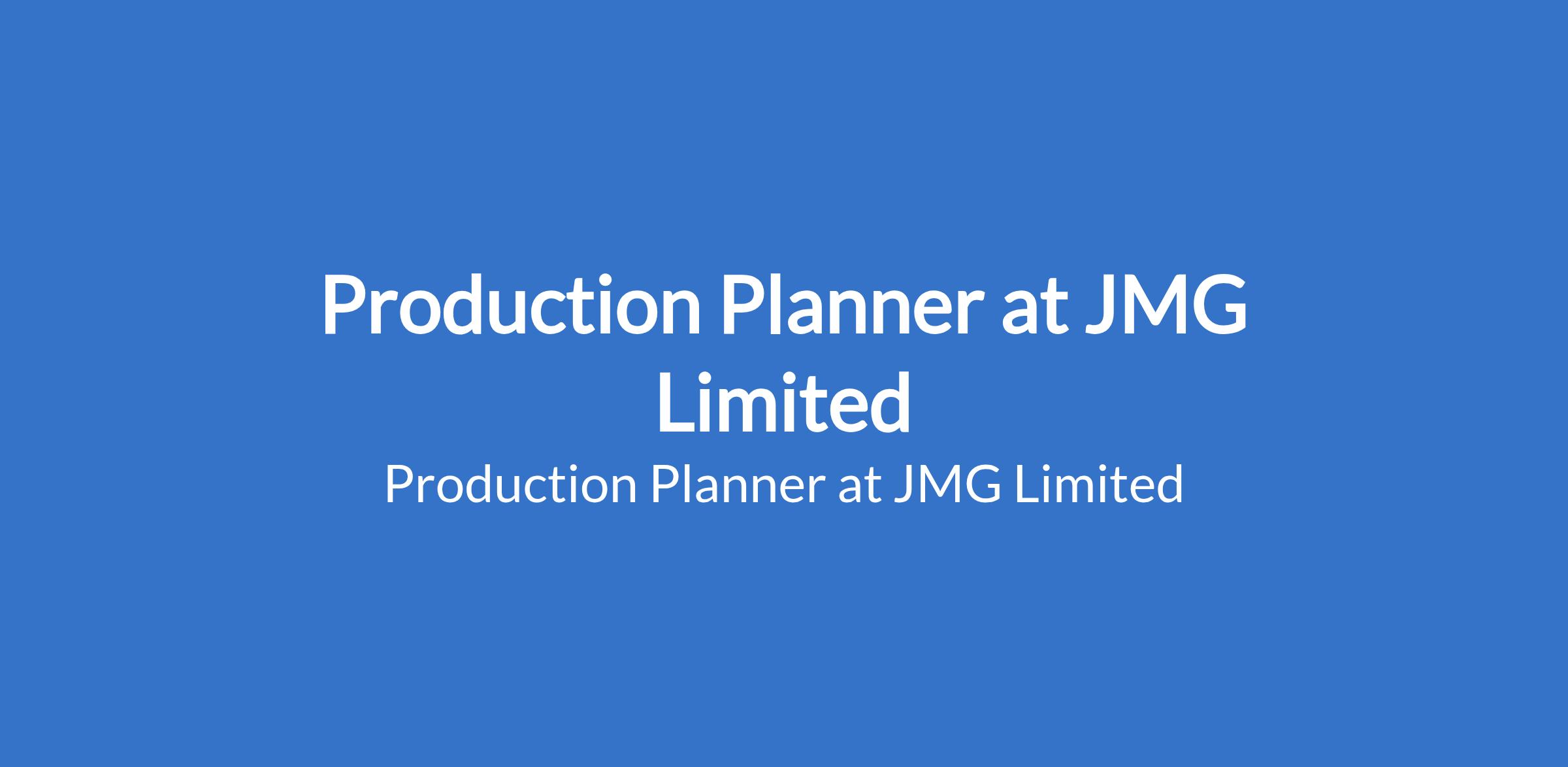 JMG Limited is recruiting to fill the position of: Production Planner. The position is located in Lagos State. Interested candidates should possess a Bachelor's Degree inIndustrial, Mechanical, Electro-Mechanical, Electrical or equivalent with 3 - 5 years of proven work experience as a production planner.