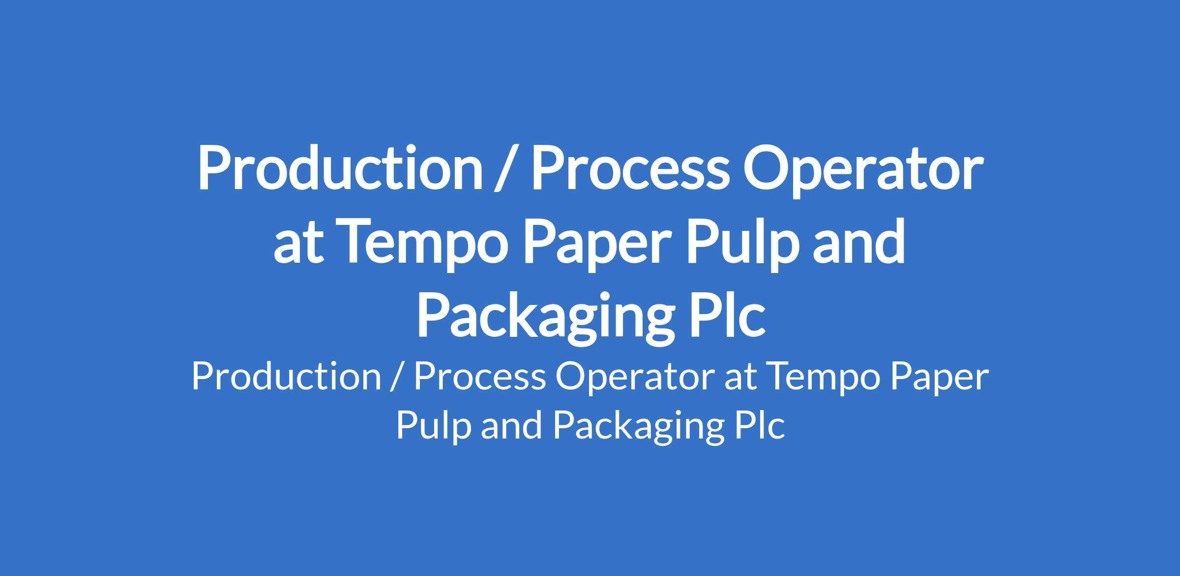 Tempo Paper Pulp and Packaging Plc is recruiting to fill the position of: Production / Process Operator. The position is located in Ota, Ogun State. Salary: N150,000 monthly. Interested candidates should possess an Industrial Training / OND in any science discipline with 3 years in the relevant Industry.