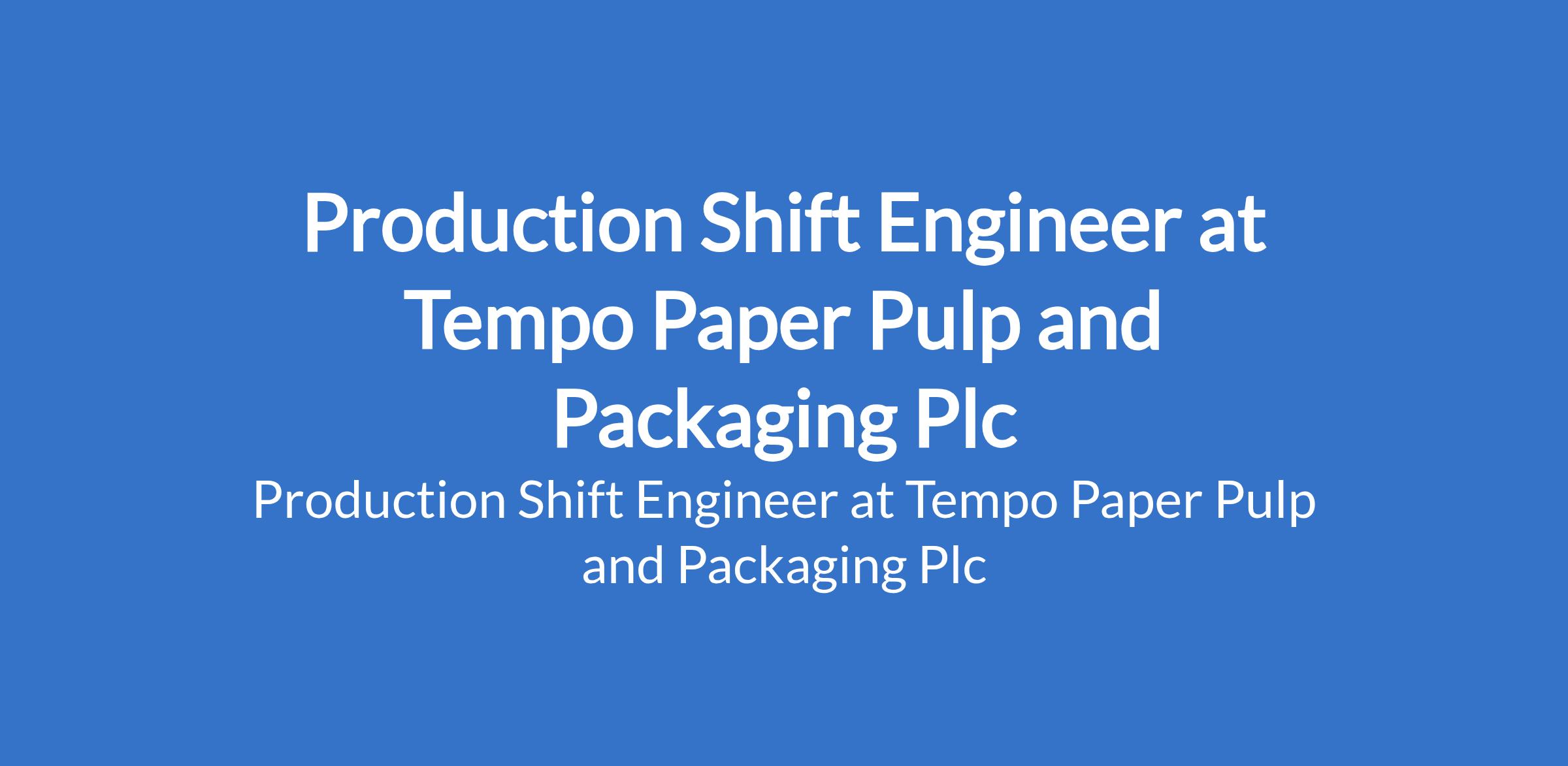 Tempo Paper Pulp and Packaging Plc is recruiting to fill the position of: Production Shift Engineer. The position is located in Ota, Ogun State. Salary: N500,000 - N590,000 monthly. Interested candidates should possess a Degree / Diploma in Engineering / Science / Any Stream with a minimum of 4 years in relevant industry.
