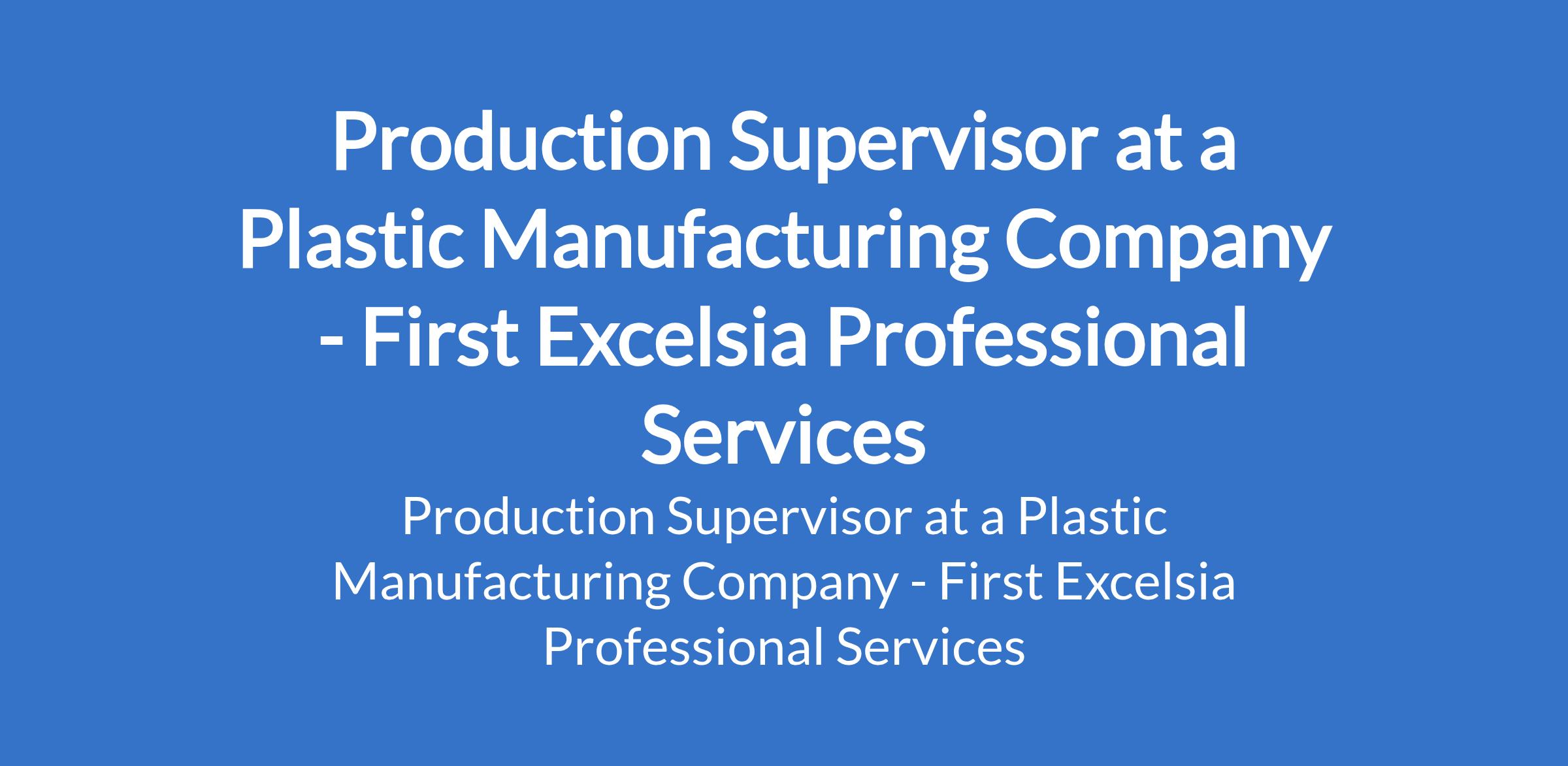 First Excelsia Professional Services - Our client,a Plastic Manufacturing Company, is recruiting to fill the position of: Production Supervisor. The position is located in Lagos State. Interested candidates should possess an OND / HND / Bachelors degree in Engineering, Industrial Technology, or a related field with 2 4 years of supervisory experience in a plastic manufacturing or related production environment.