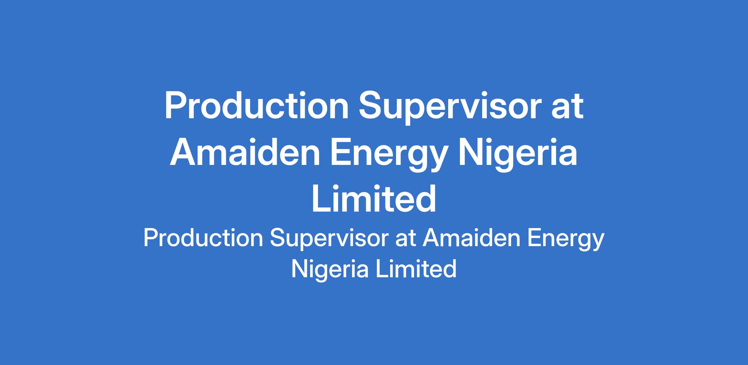 Amaiden Energy Nigeria Limited is recruiting to fill the position of: Production Supervisor. The position is located in Port Harcourt, Rivers State. Interested candidates should possess a minimum of 5 years oilfield production / processing operations experience, 3 years of which must be in a supervisory role with knowledge of Maintenance Management System for Production / Flow Station facility equipment.
