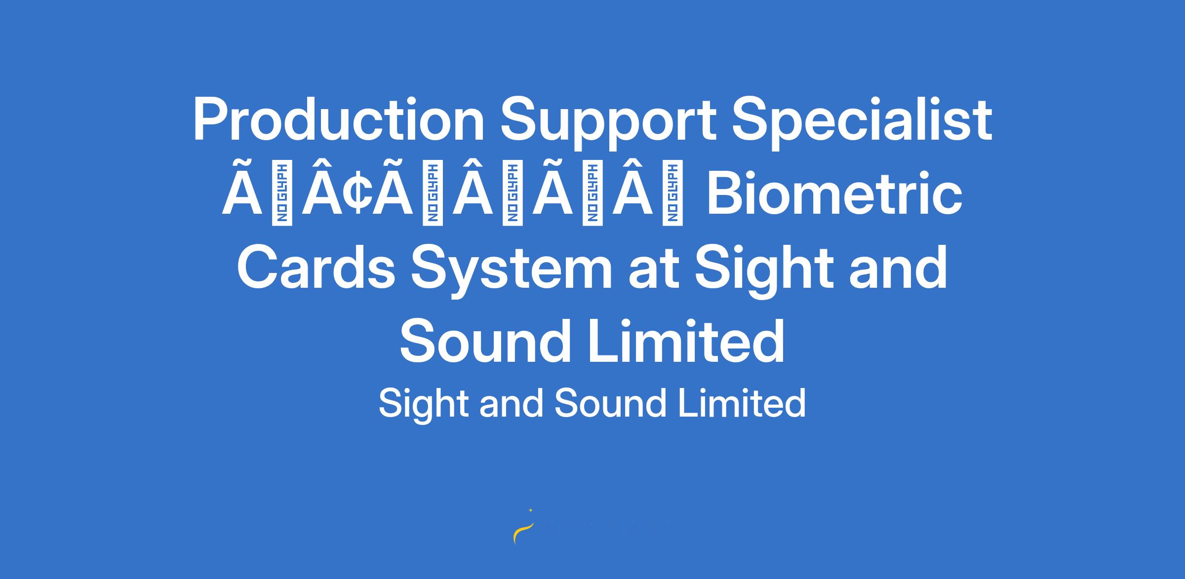 Production Support Specialist âÃÂàBiometric Cards System at Sight and Sound Limited