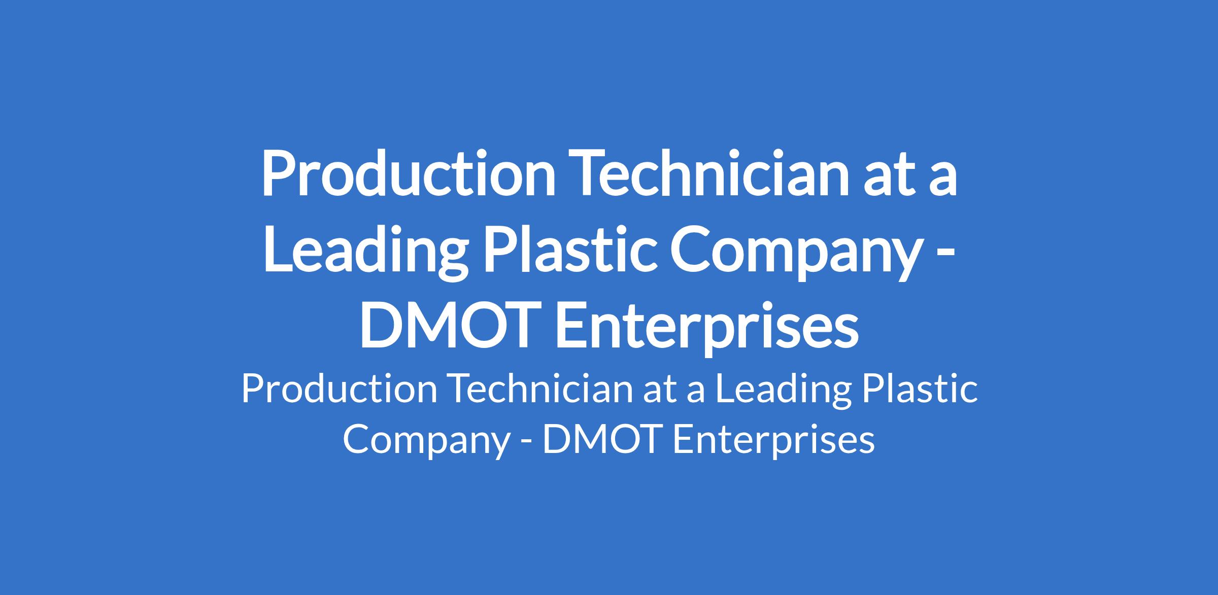 Production Technician at a Leading Plastic Company - DMOT Enterprises