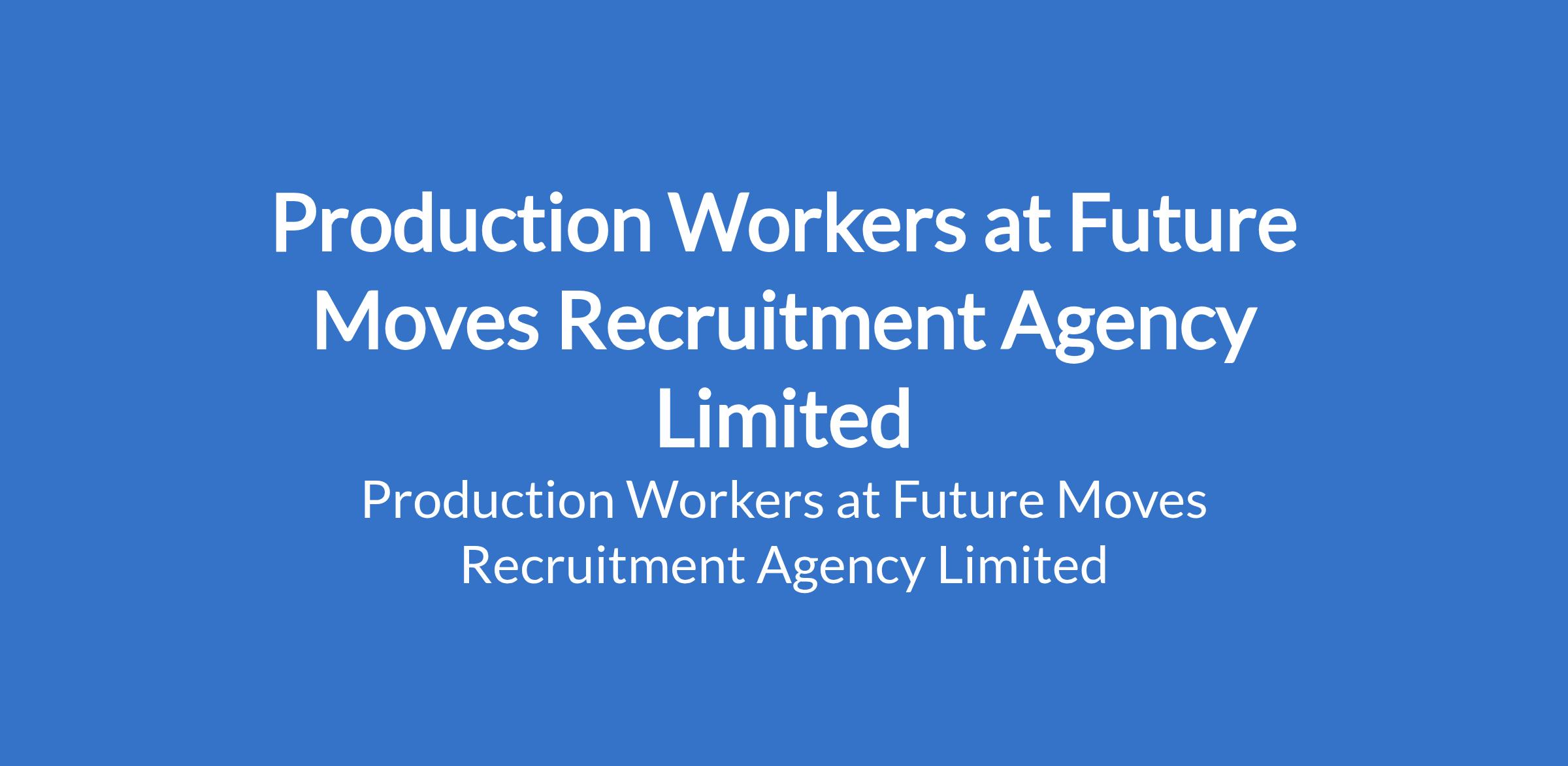 Production Workers at Future Moves Recruitment Agency Limited