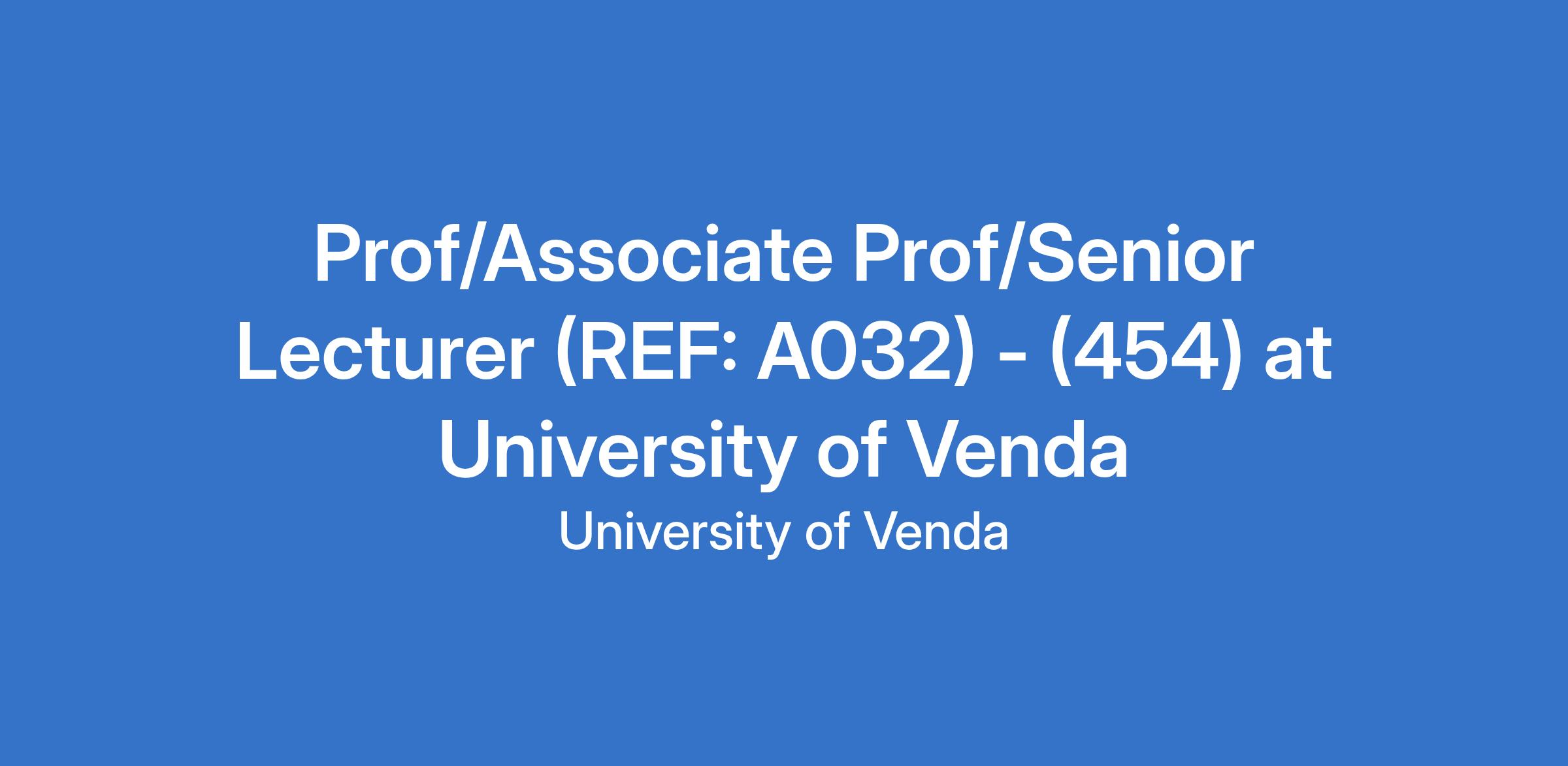 Prof/Associate Prof/Senior Lecturer (REF: A032) - (454) at University of Venda