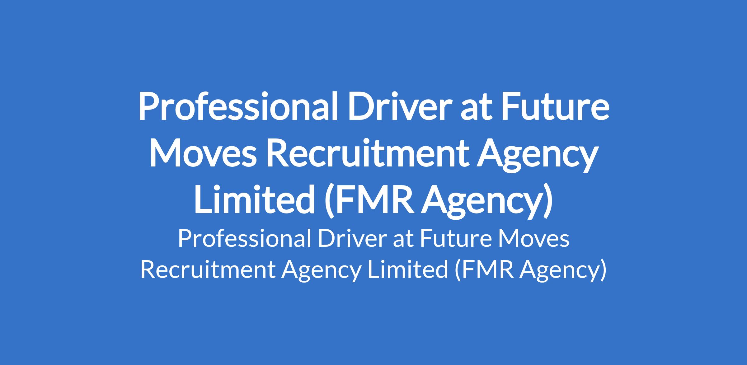 Future Moves Recruitment Agency Limited (FMR Agency) is recruiting to fill the position of: Professional Driver. The position is located in Gbagada, Lagos State. Salary: N100,000 - N120,000 per month. Interested candidates should possess a valid drivers license with 23 years professional driving experience and applicants must reside within or close to this area.