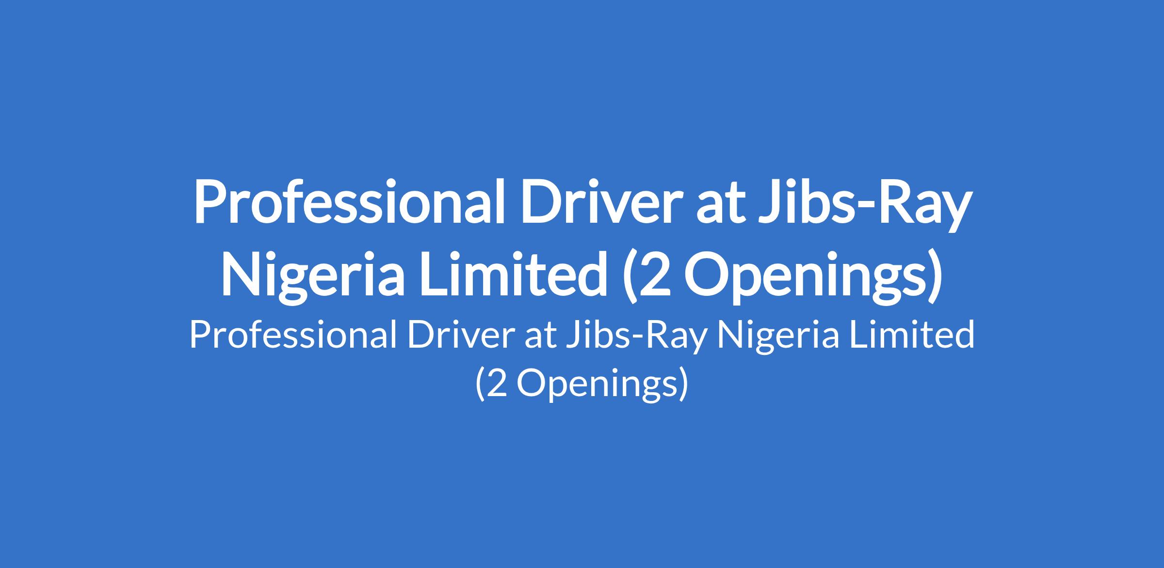 Jibs-Ray Nigeria Limited is recruiting to fill the position of: Professional Driver. The position is located in Oworonshoki - Gbagada, and Ikoyi - Lagos State. Salary: N150,000 monthly. Interested candidates should possess a valid drivers license with at least 3 years proven experience in a corporate driving role, and should be residing around Ikoyi, Obalende, Gbagada or Oworonshoki.