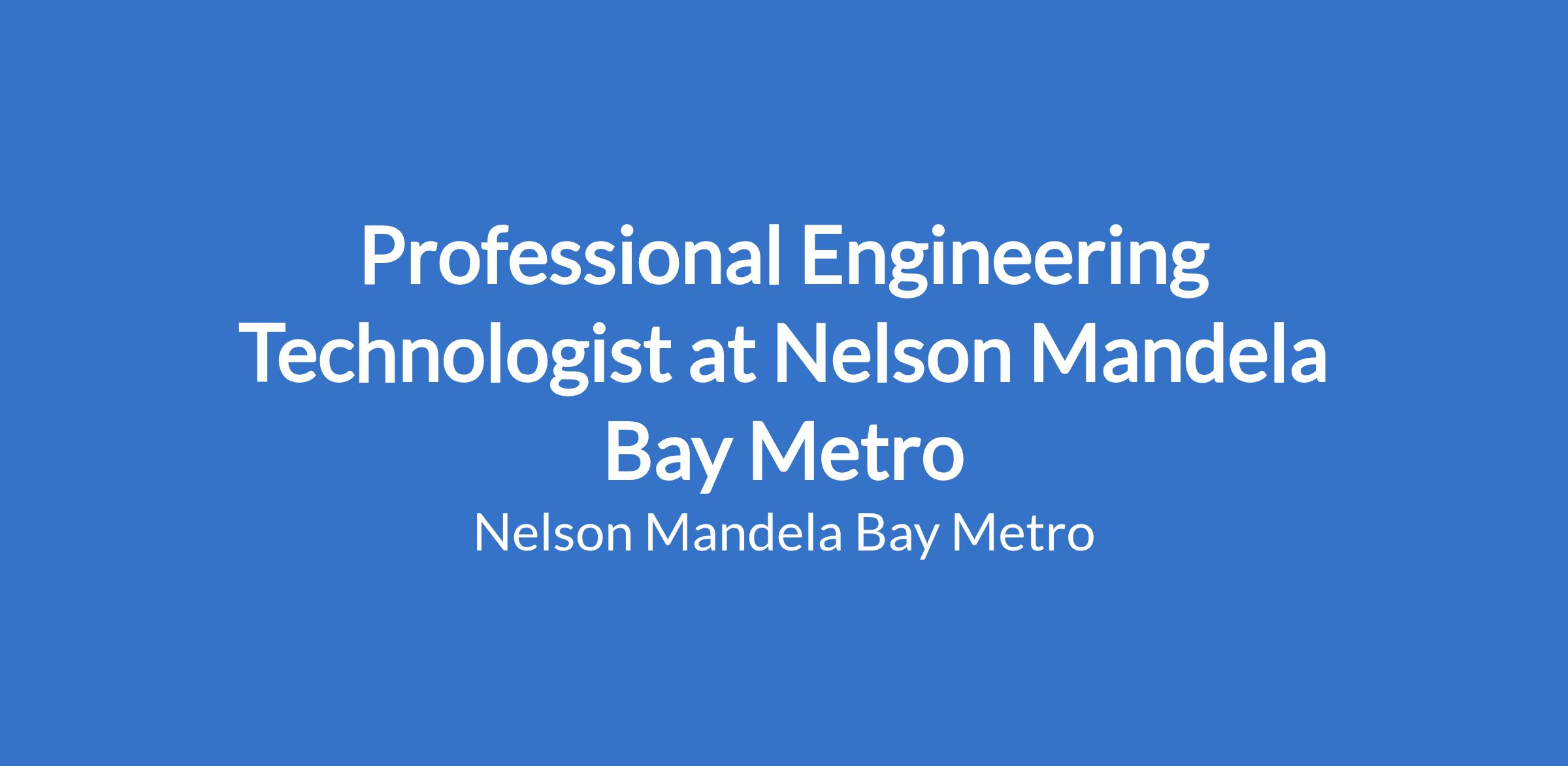 Registered with ECSA as a Professional Engineering Technologist.